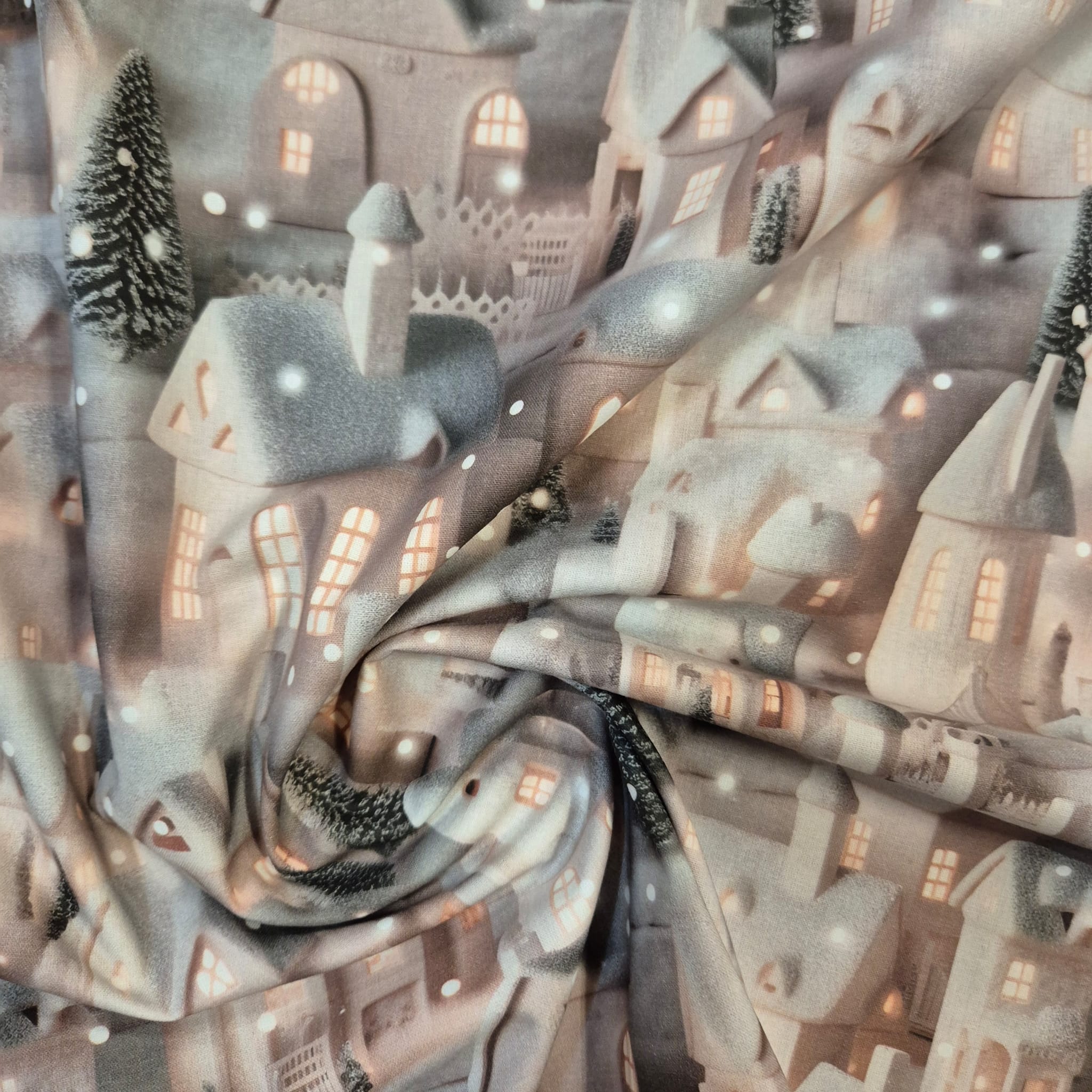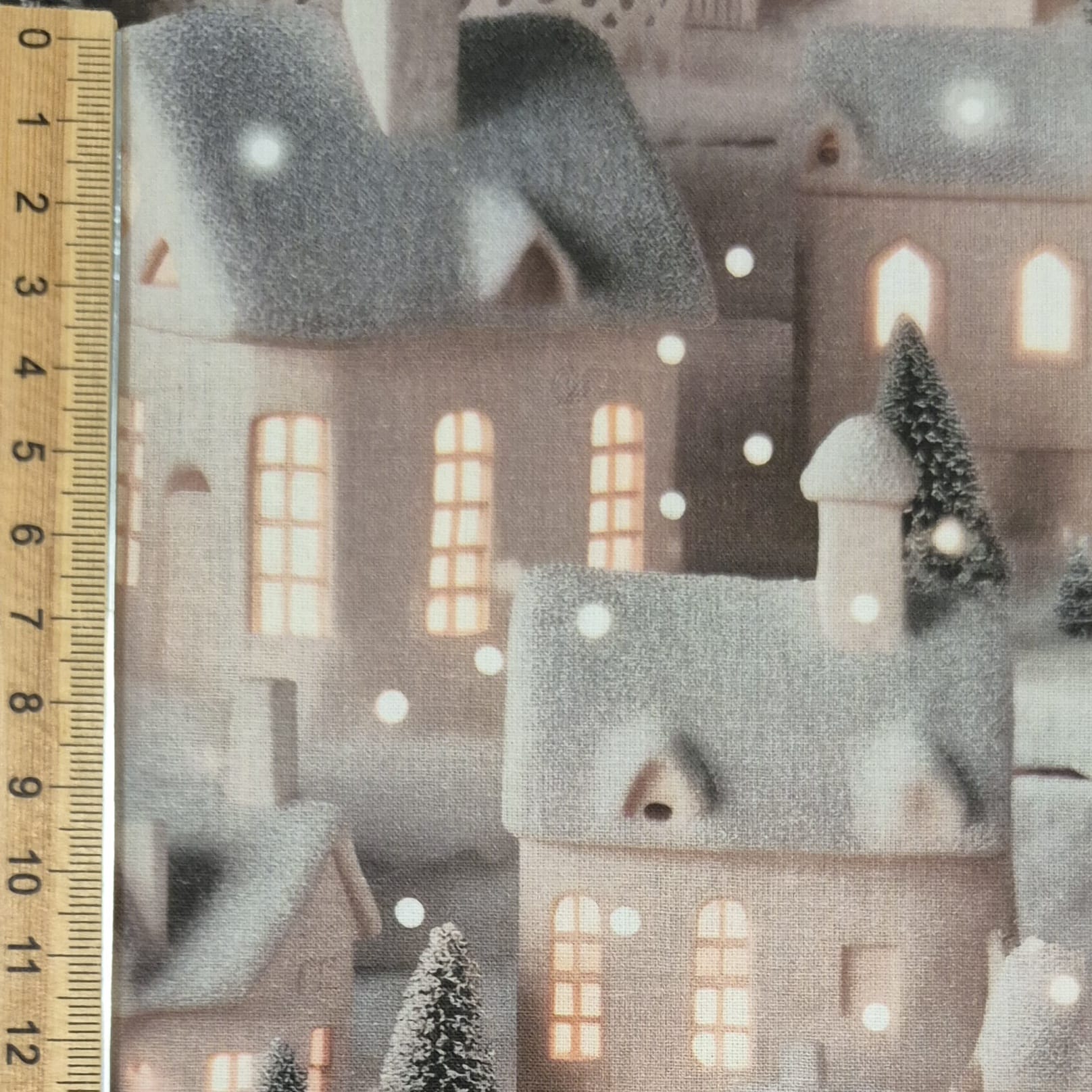 Stoff Meterware Baumwolle "Schneestadt" Häuser Weihnachten Digitaldruck 0,5