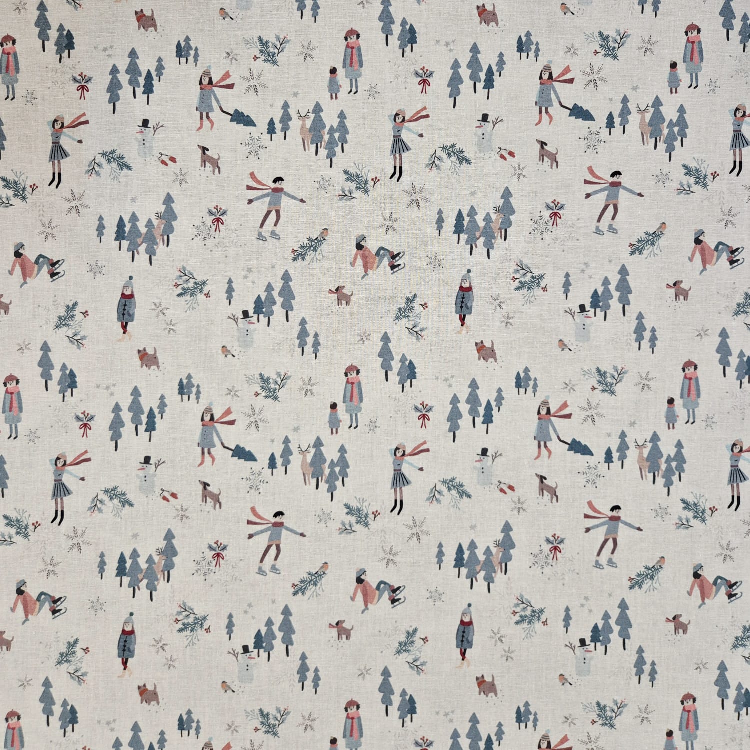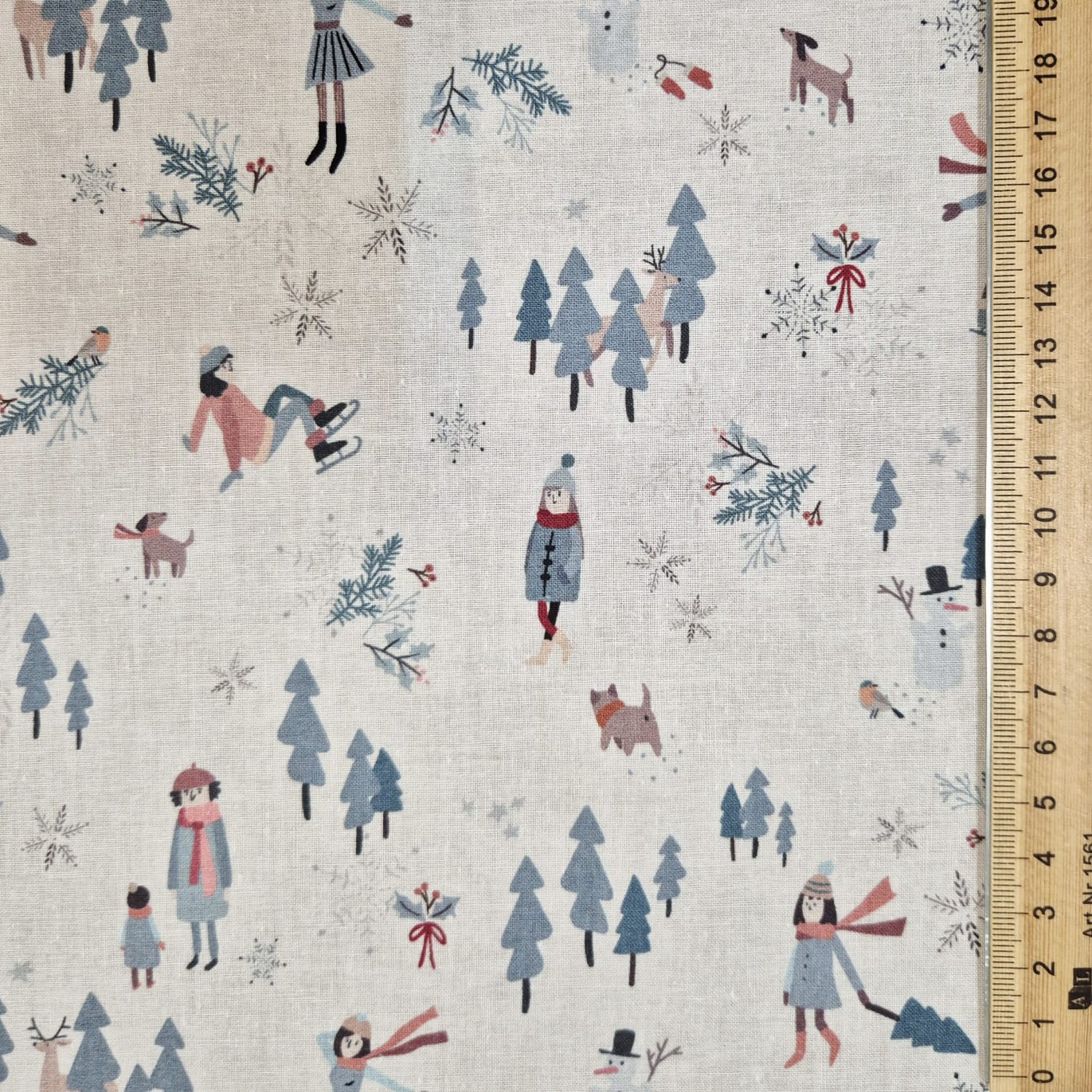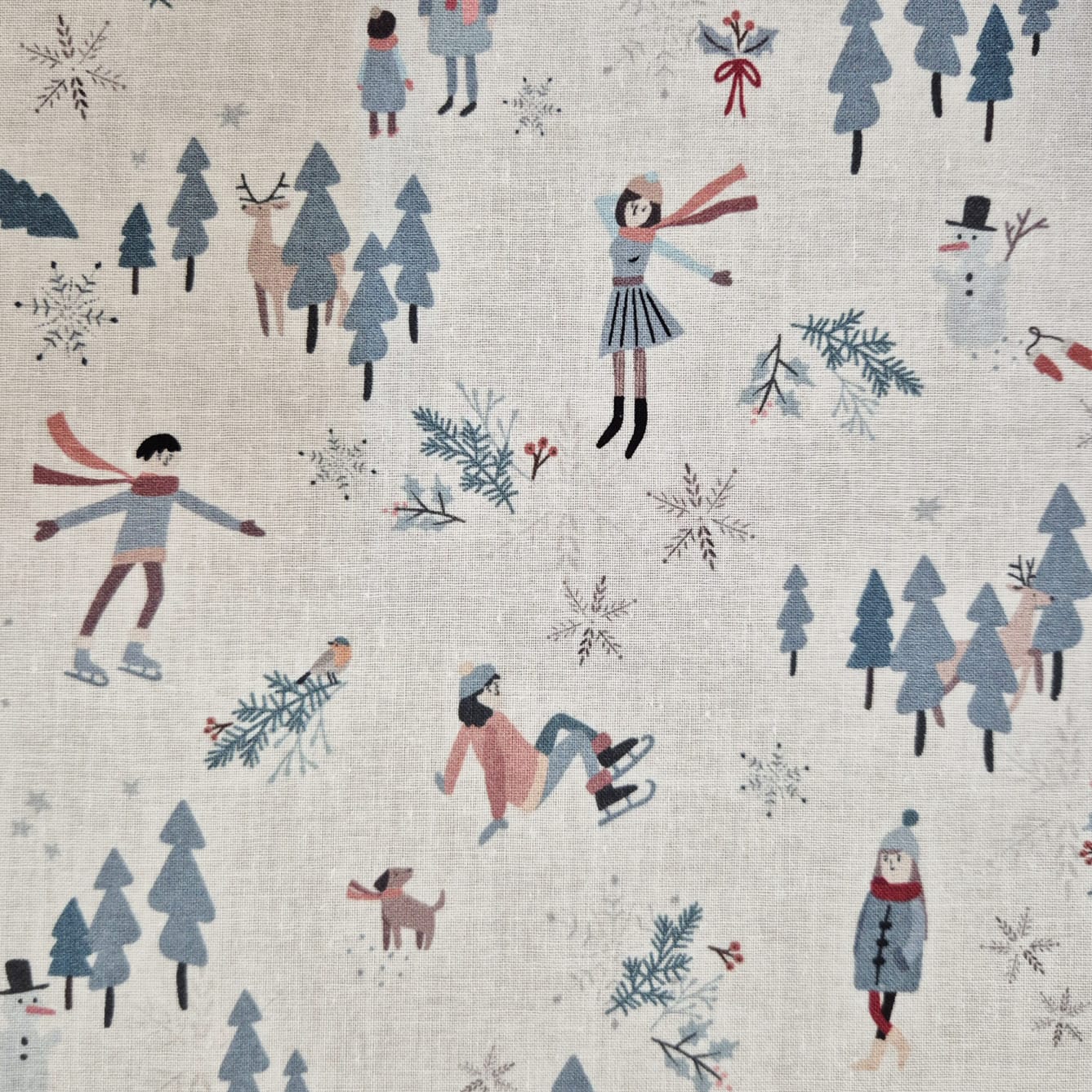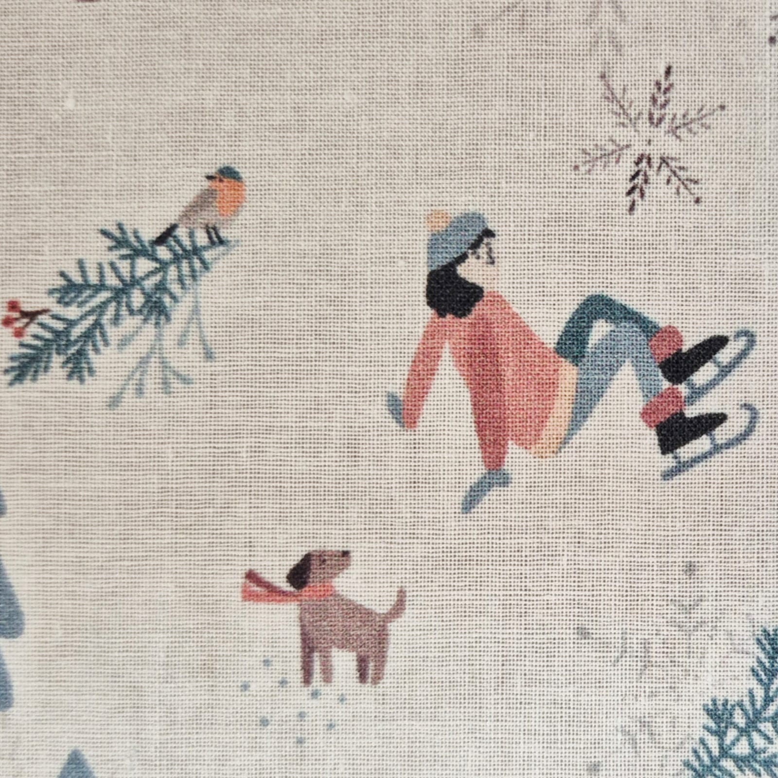 Der Preis bezieht sich auf 1/2 Laufmeter (0,5 m Länge x 1,50 m Breite) Baumwollstoff, einseitig bedruckt mit Spaziergängern*innen und Schlittschuhläufern*innen in einer winterlichen Landschaft. Der zarte Druck macht Lust auf Winter und Schnee!