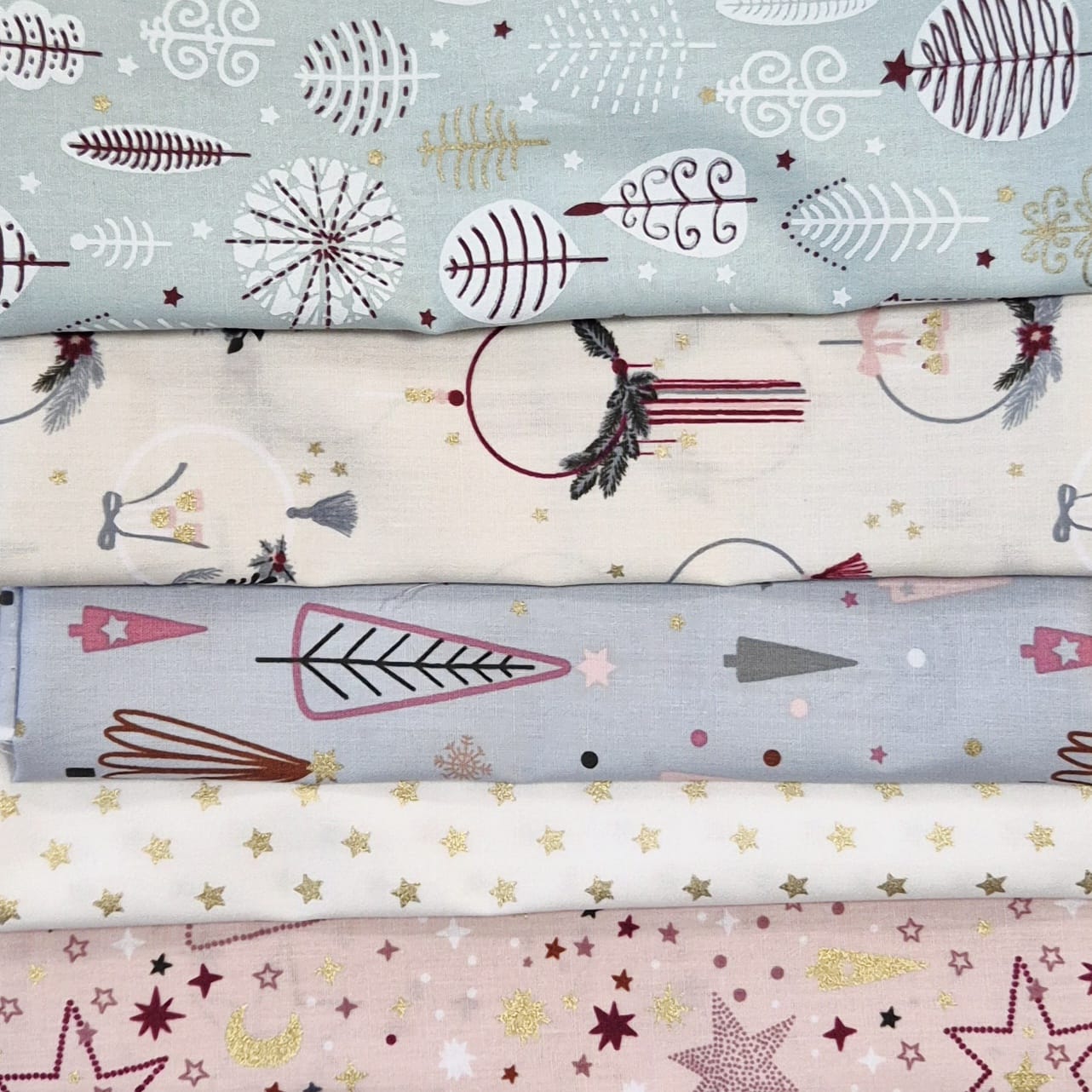Weihnachtsstoffe in sanften Pastelltönen