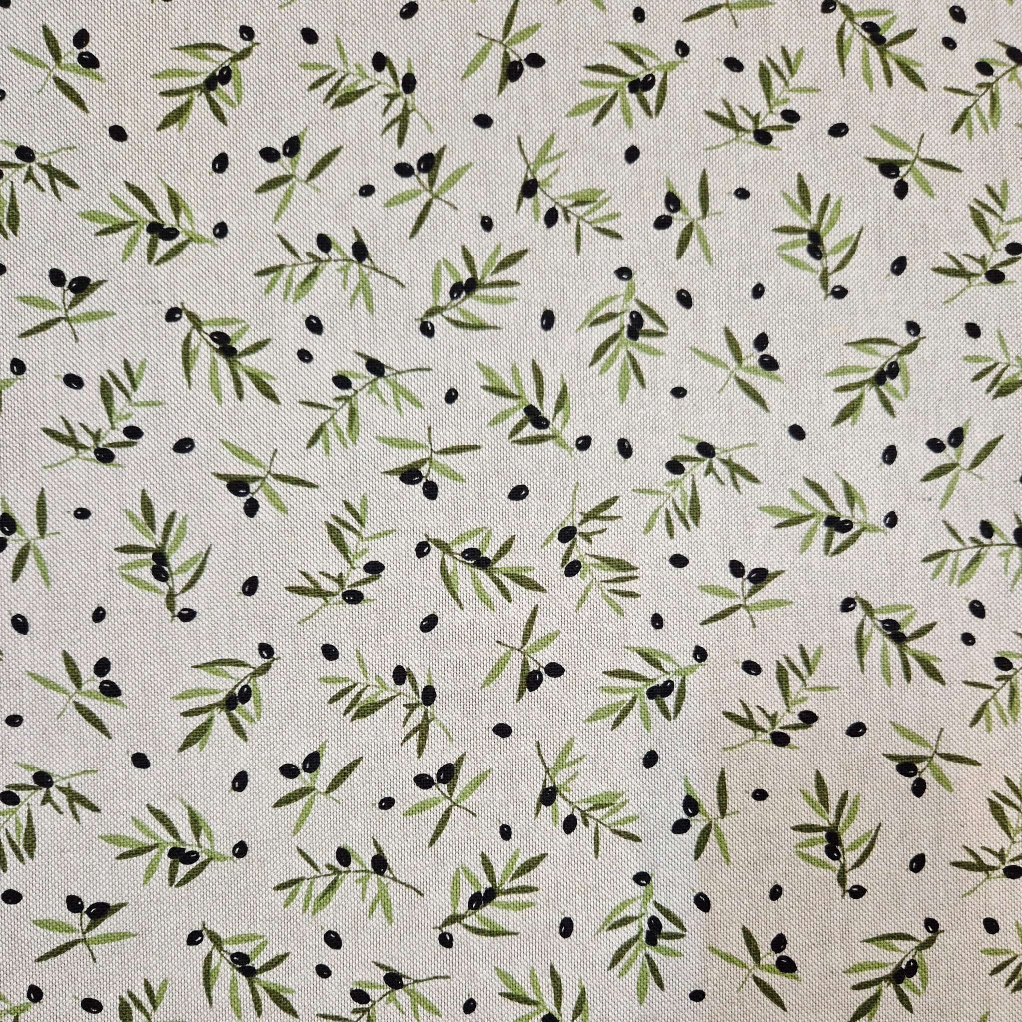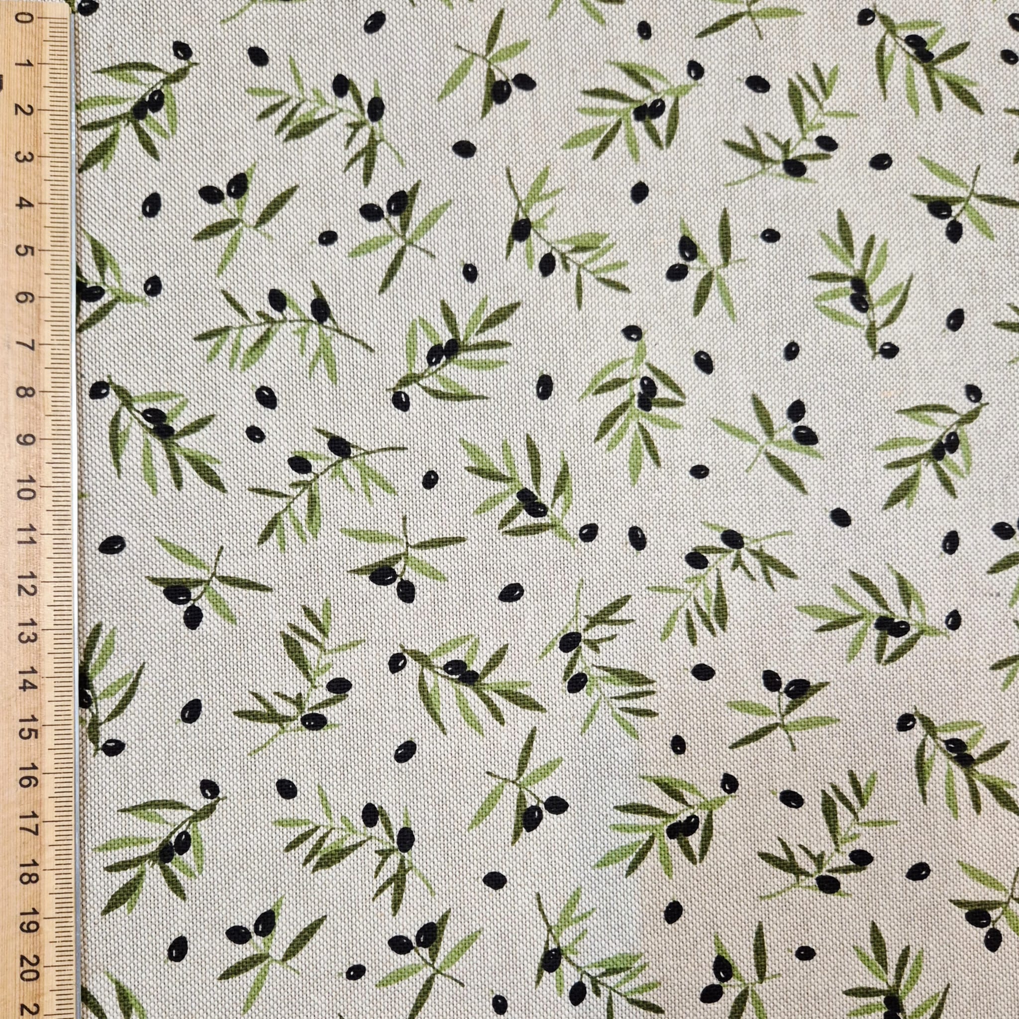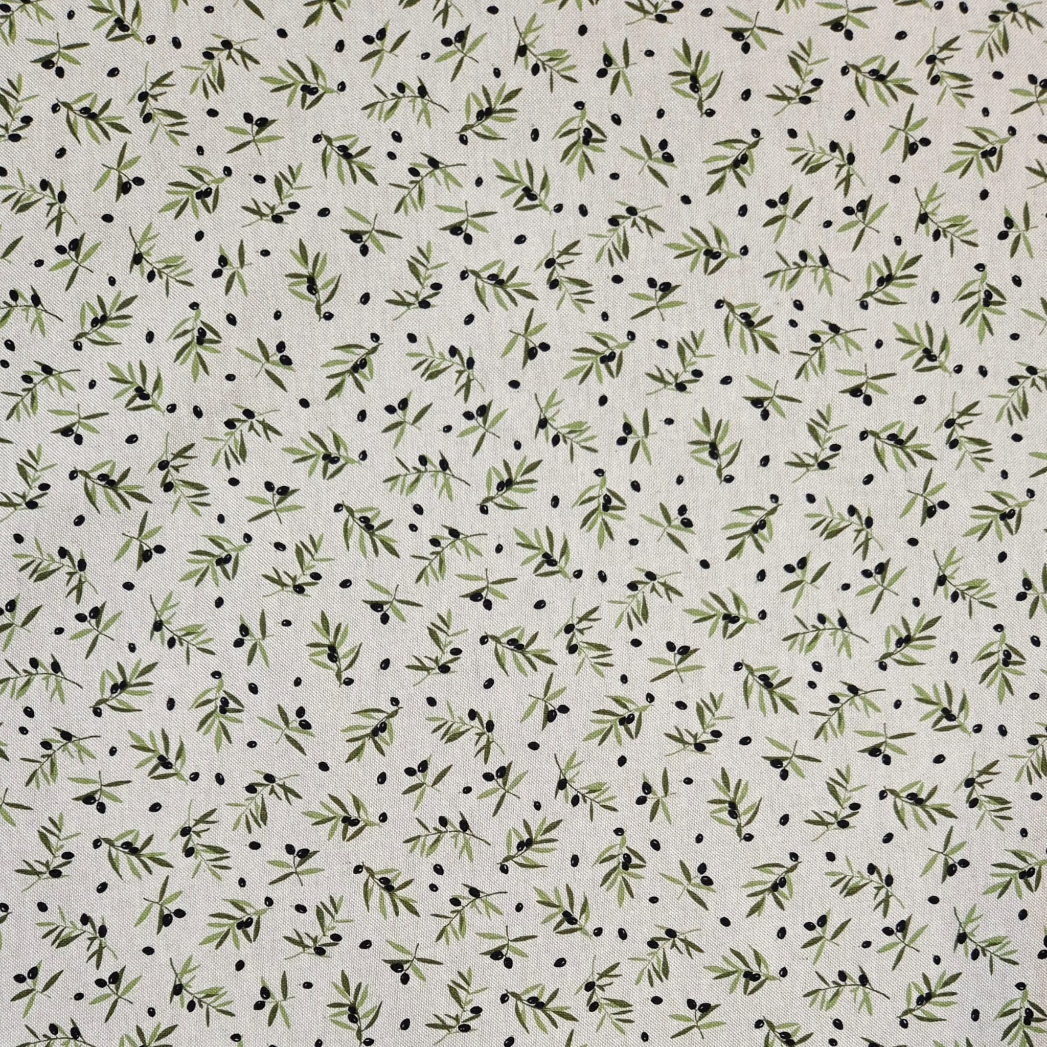 Der Preis gilt je 1/2 Laufmeter ( 0,5m Länge x 1,40 m Breite ) Baumwoll-Mischgewebe, einseitig bedruckt mit kleinen Oliven. Ein toller, robuster Stoff in klassischem mediterranen Stil.