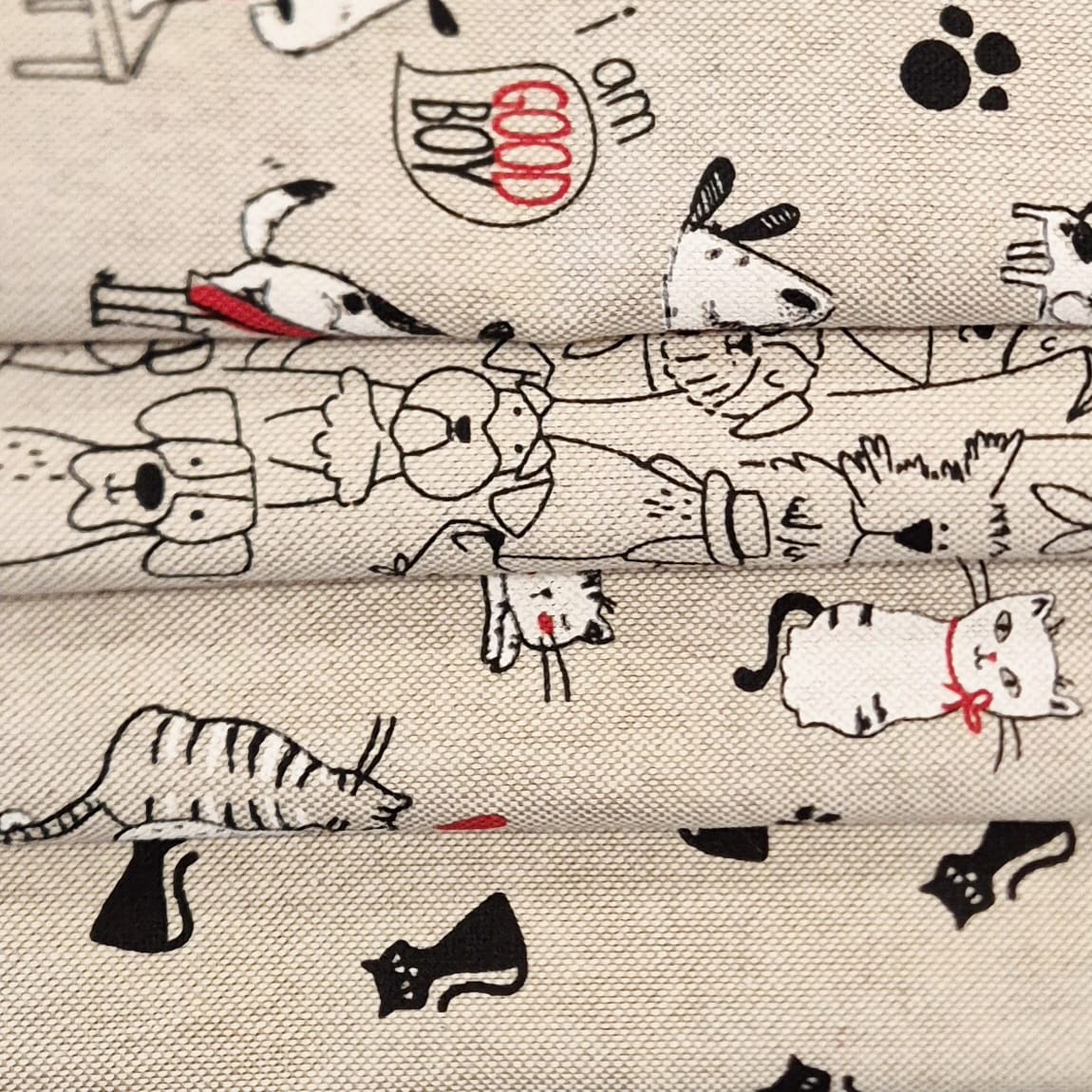 Der Preis gilt für ein Paket, bestehend aus 4 unterschiedlichen Baumwollmischgeweben . Abmessung der Stücke ist 50cm x 70cm. Das Paket besteht aus den Artikeln "Hunde", "Cartoon Dogs", "Katzen" und "Katzen schwarz".