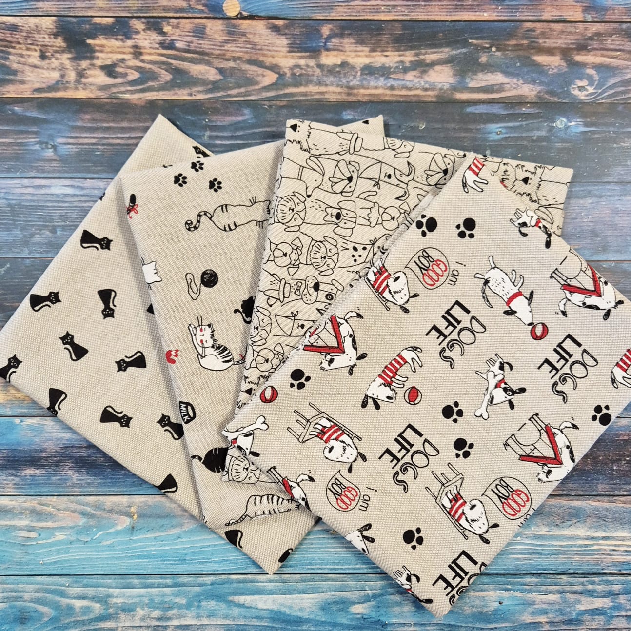 Stoffpaket "Hunde & Katzen" Quilten Patchwork Geschenkverpackung 4 Stücke a 50cm x 70cm