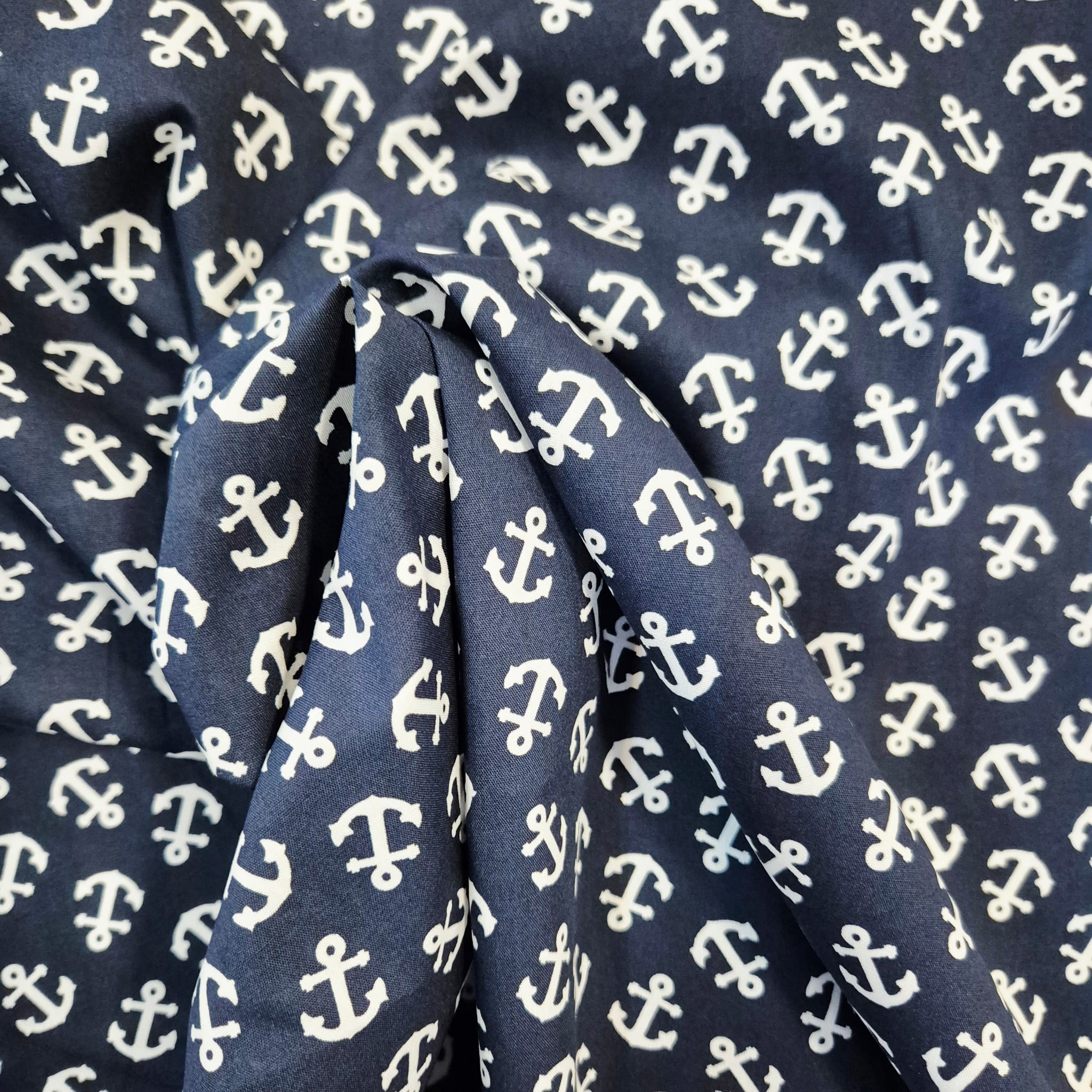 Weiterführende Links zu "Stoff Baumwolle Popeline "Anker" dunkelblau weiß Kleiderstoff Dekostoff 0,5"