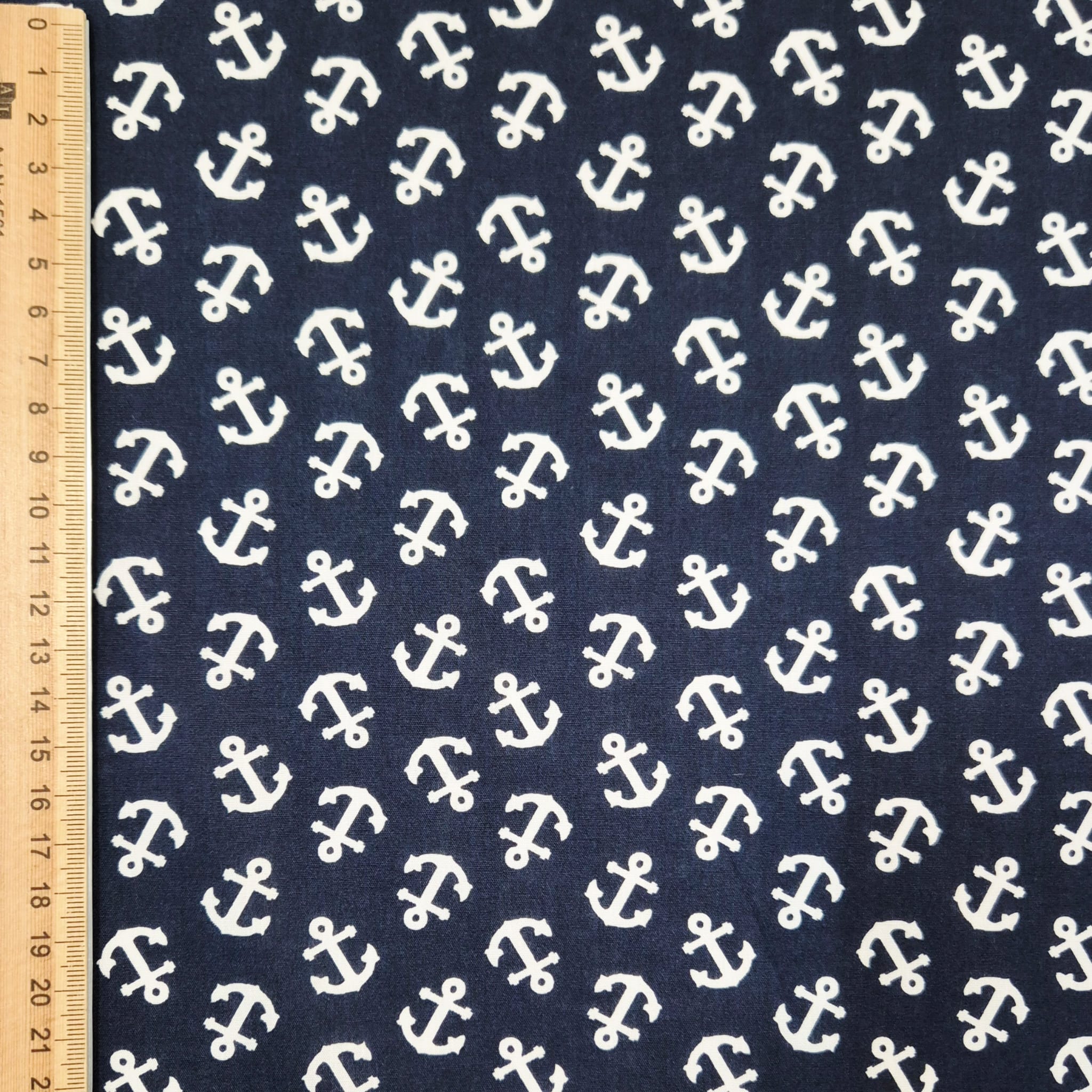Stoff Baumwolle Popeline "Anker" dunkelblau weiß Kleiderstoff Dekostoff 0,5