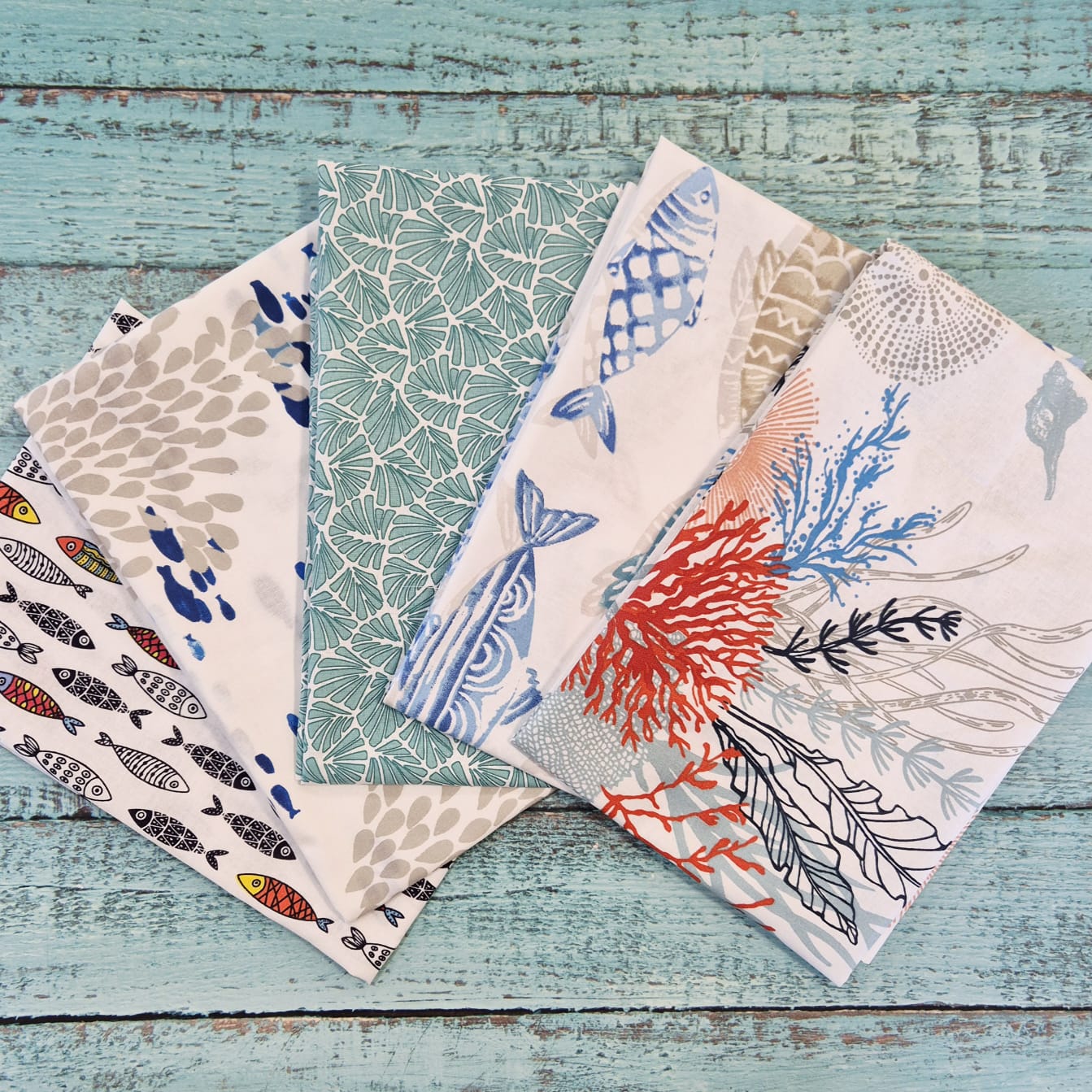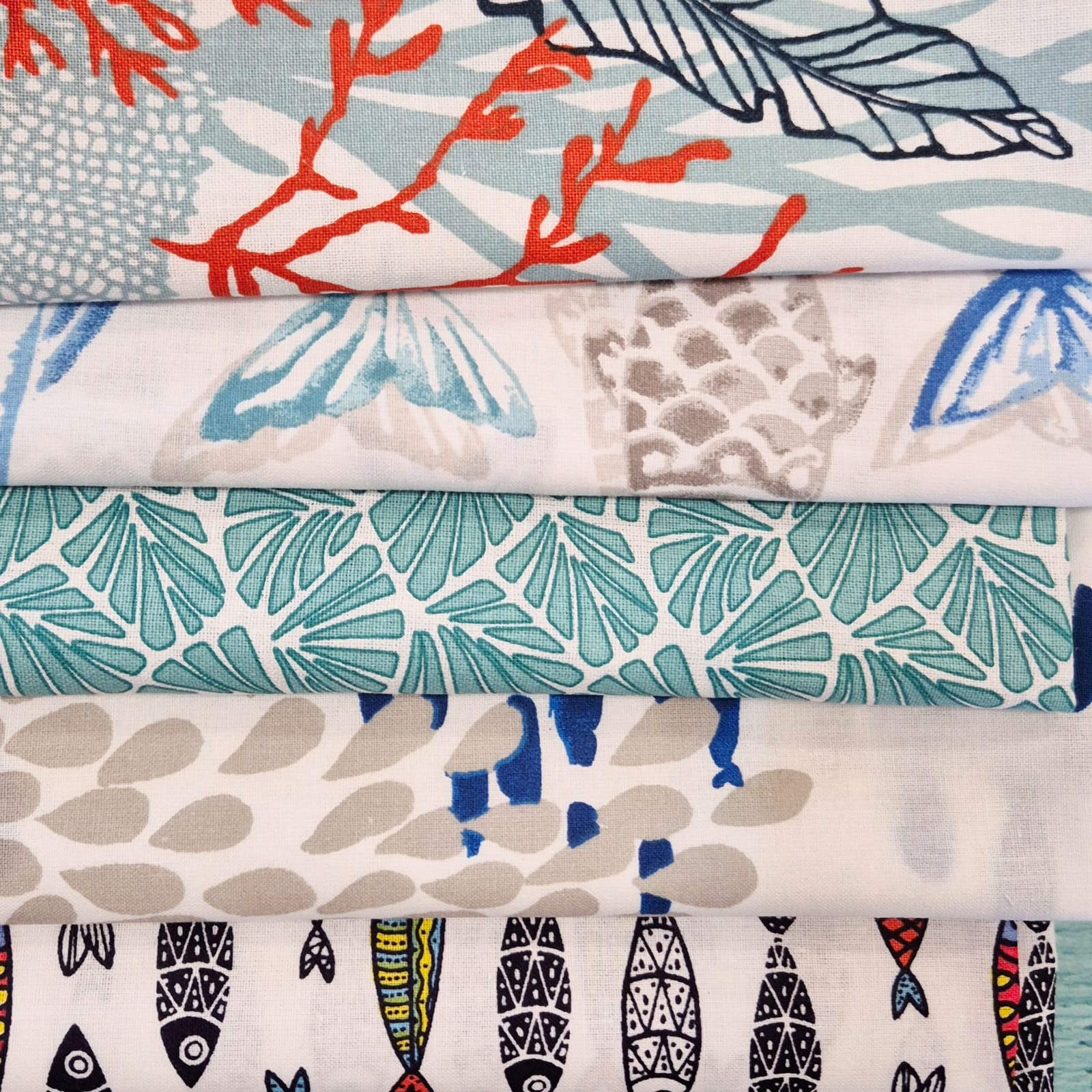 Stoffpaket "Under The Sea" Patchwork Täschchen Geschenkverpackung 5 Stücke a 50cm x 72/80c
