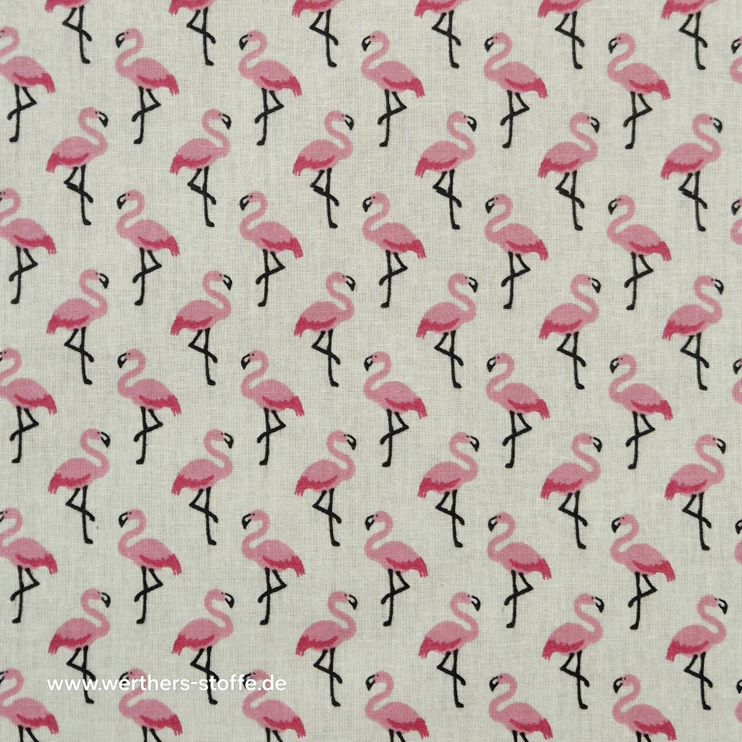 Beschichteter Baumwollstoff „Flamingo“ – Rosa Flamingos auf cremefarbenem Fond