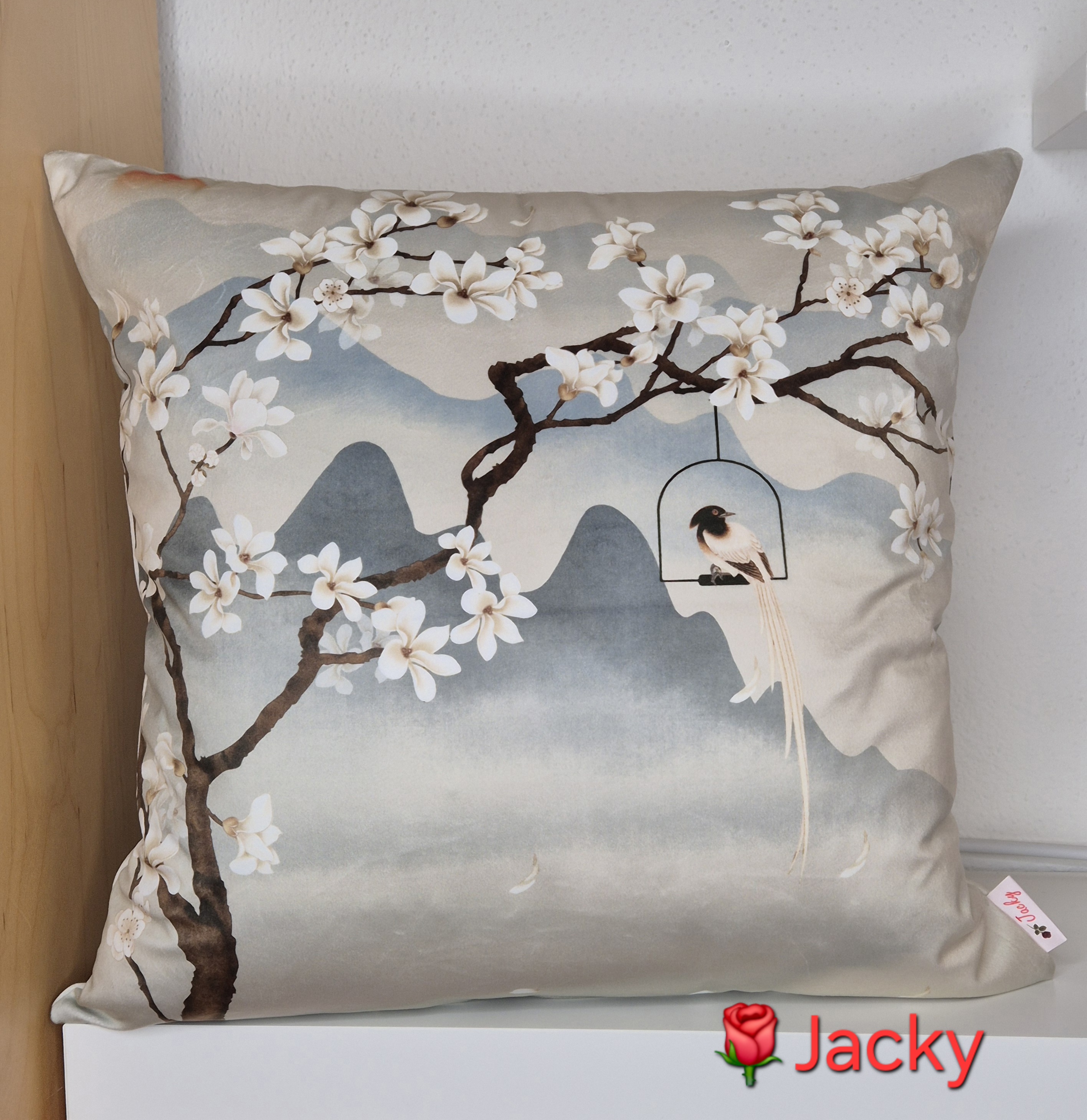 Produktinformationen "Kissenpanel Velours "Kirschblüten" Samt Deluxe 45cm x 45xm"