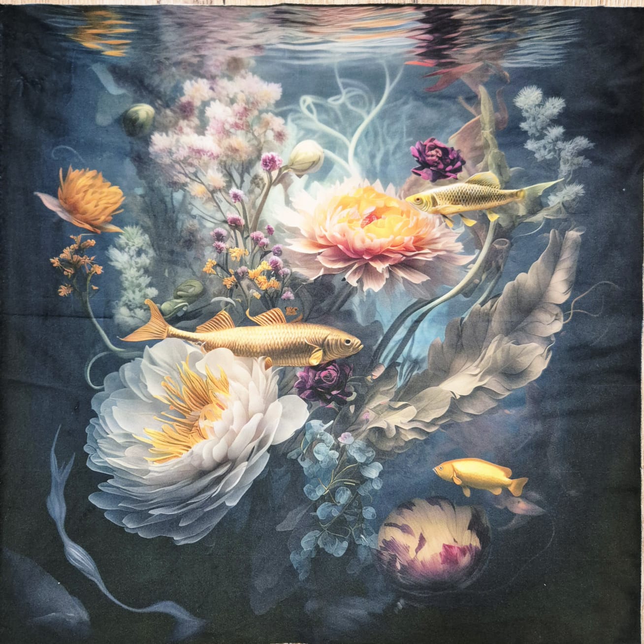 Kissenpanel Velours "Goldfisch" Samt Deluxe 45cm x 45xm