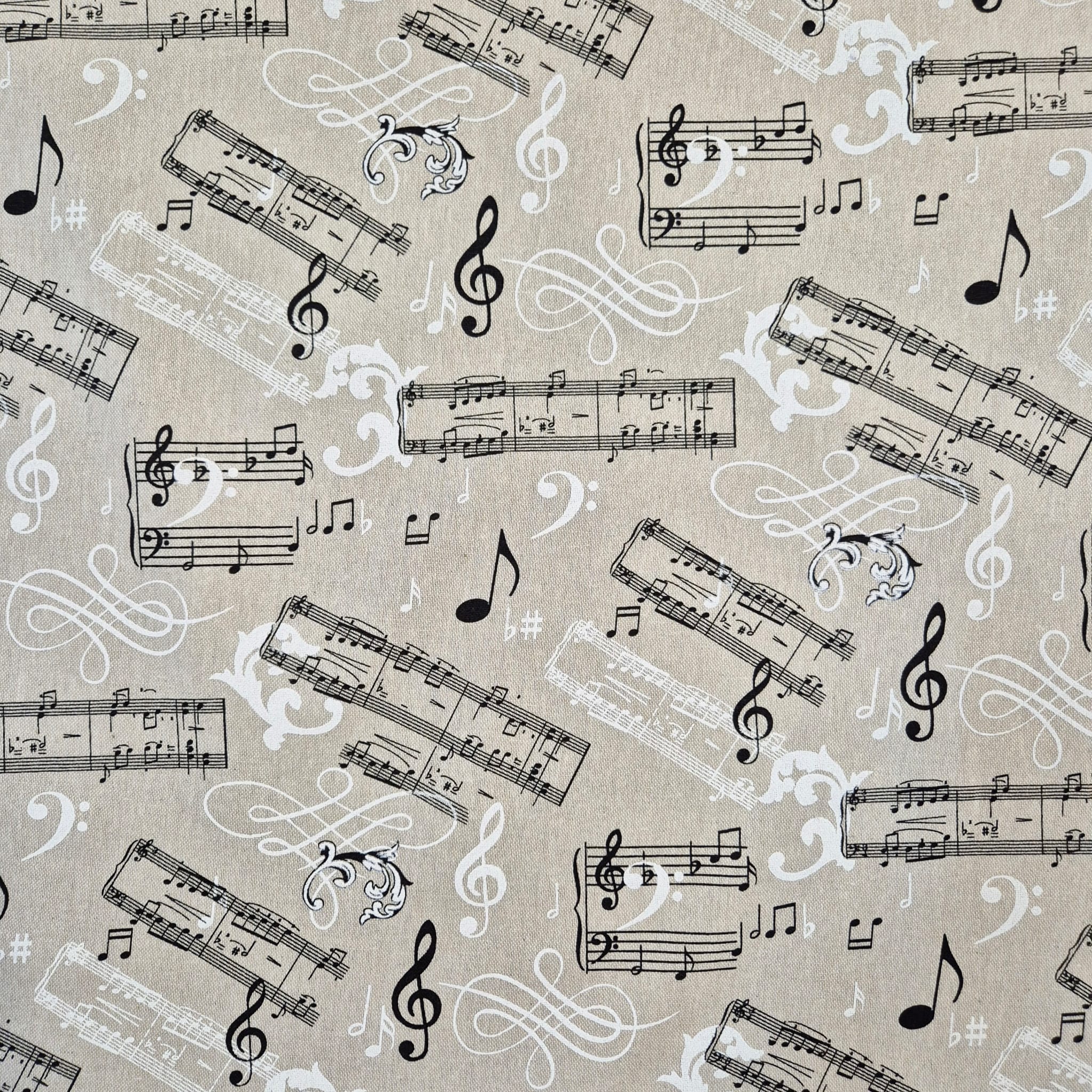Stoff Meterware Baumwolle pflegeleicht "Partitur" natur Noten Musik 0,5
