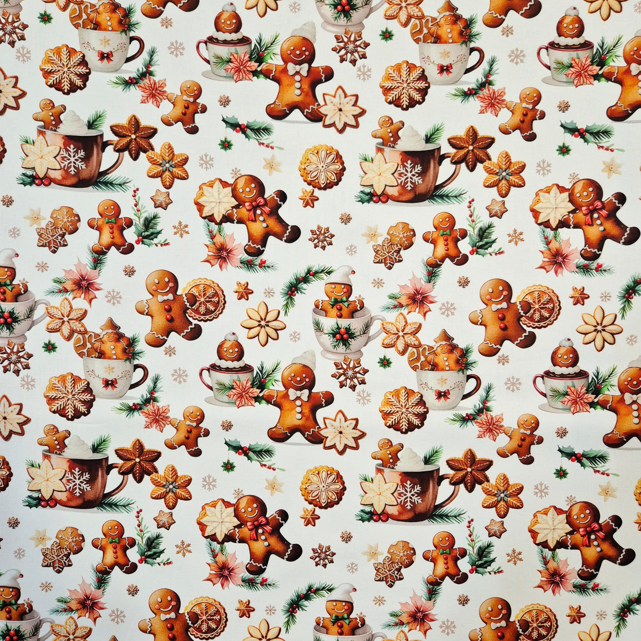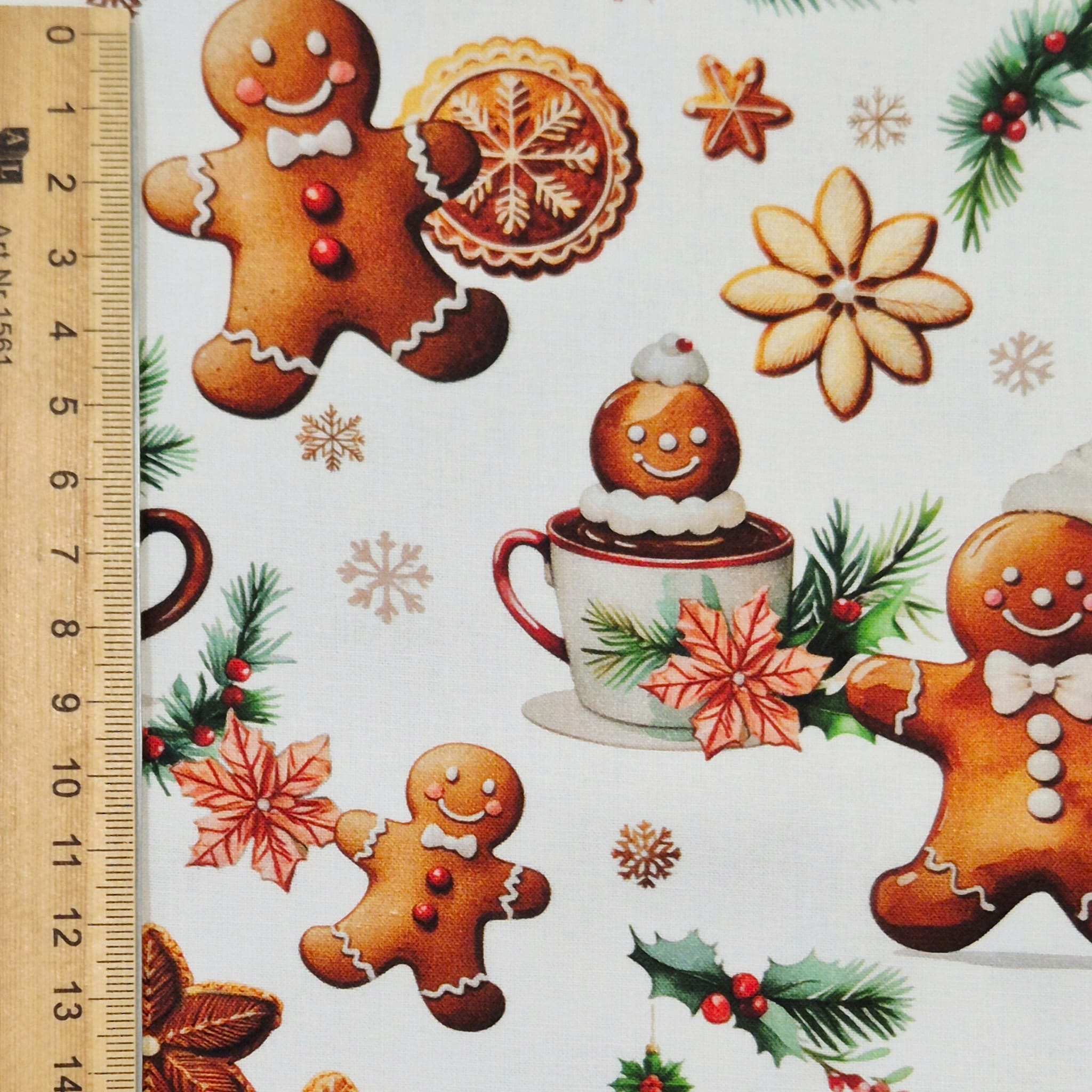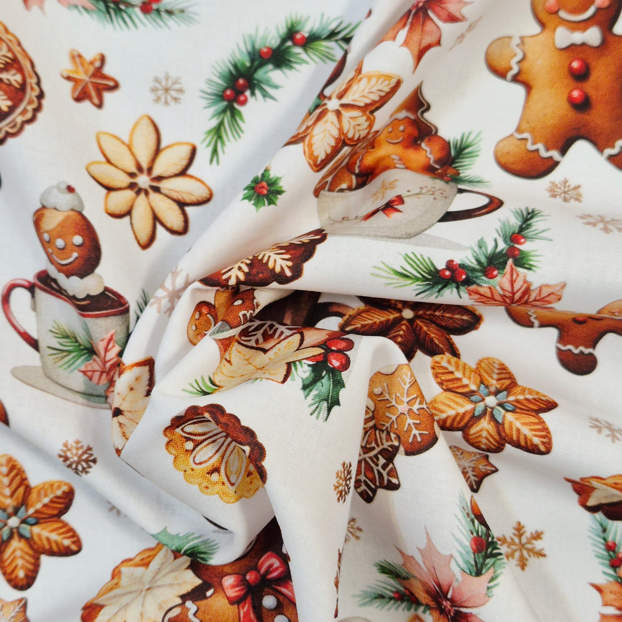 Der Preis bezieht sich auf 1/2 Laufmlieter (0,5 m Länge x 1,50 m Breite) Baumwollstoff, einseitig bedruckt mit realistisch wirkenden, unterschiedlichen Weihnachtsgebäcken. Der klare Digitaldruck lässt die Backwerke nahezu dreidimensional wirken und macht Appetit auf weihnachtliche Leckereien.
