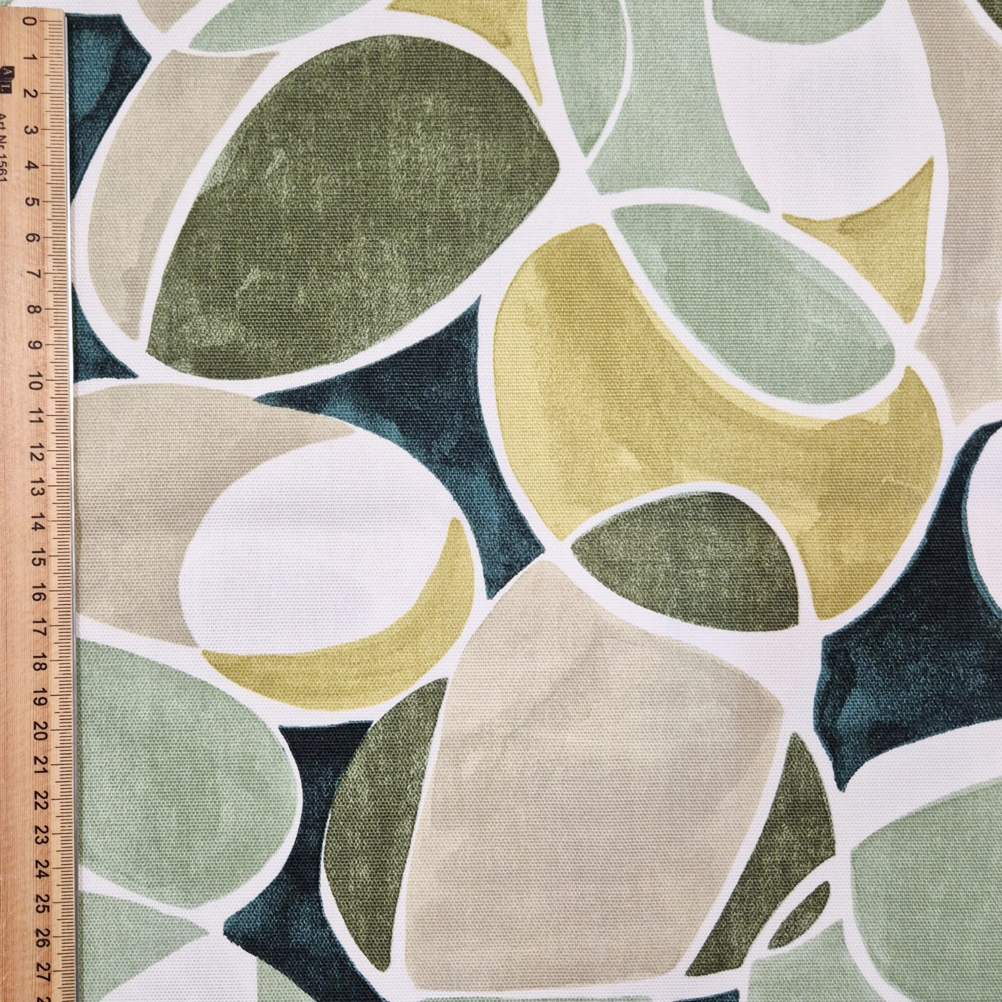 Weiterführende Links zu "Stoff Baumwolle "Pebbles" abstrakt grün beige weiß Leinenoptik 0,5"