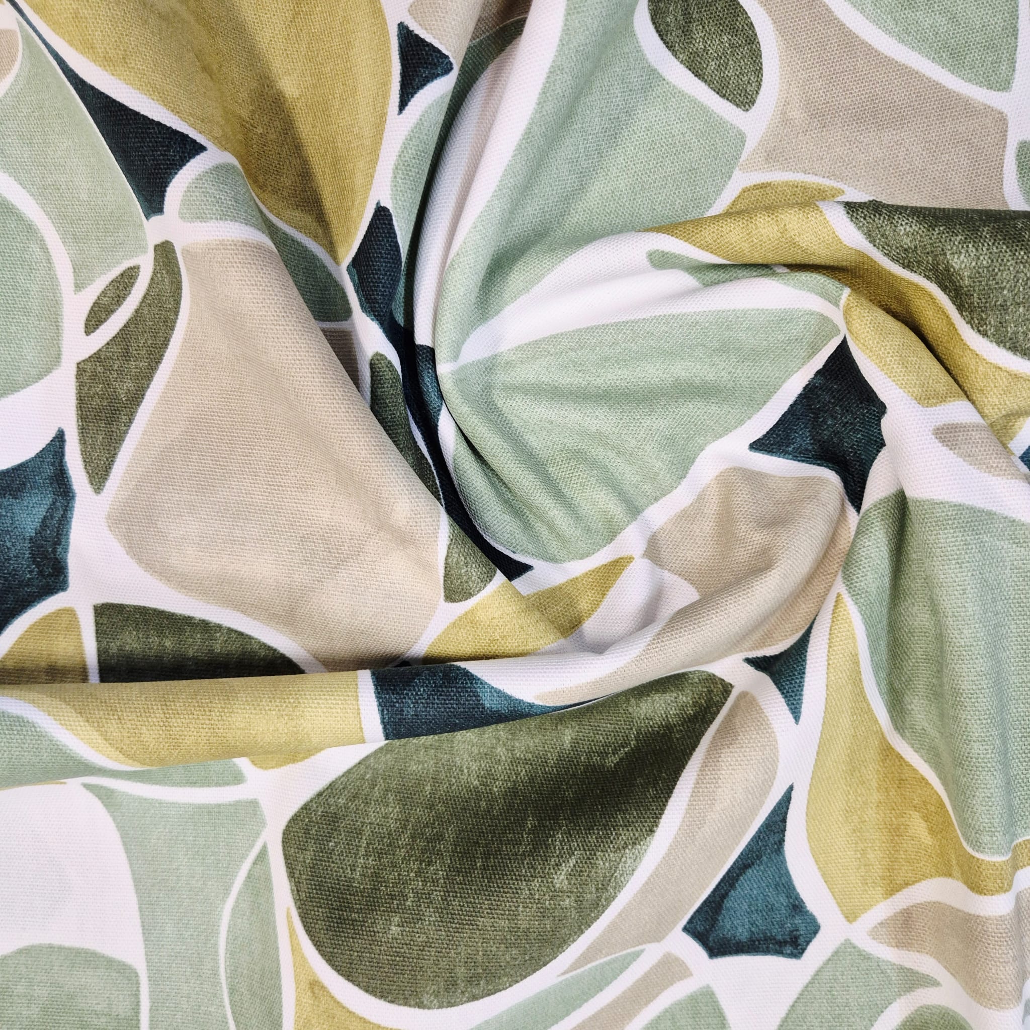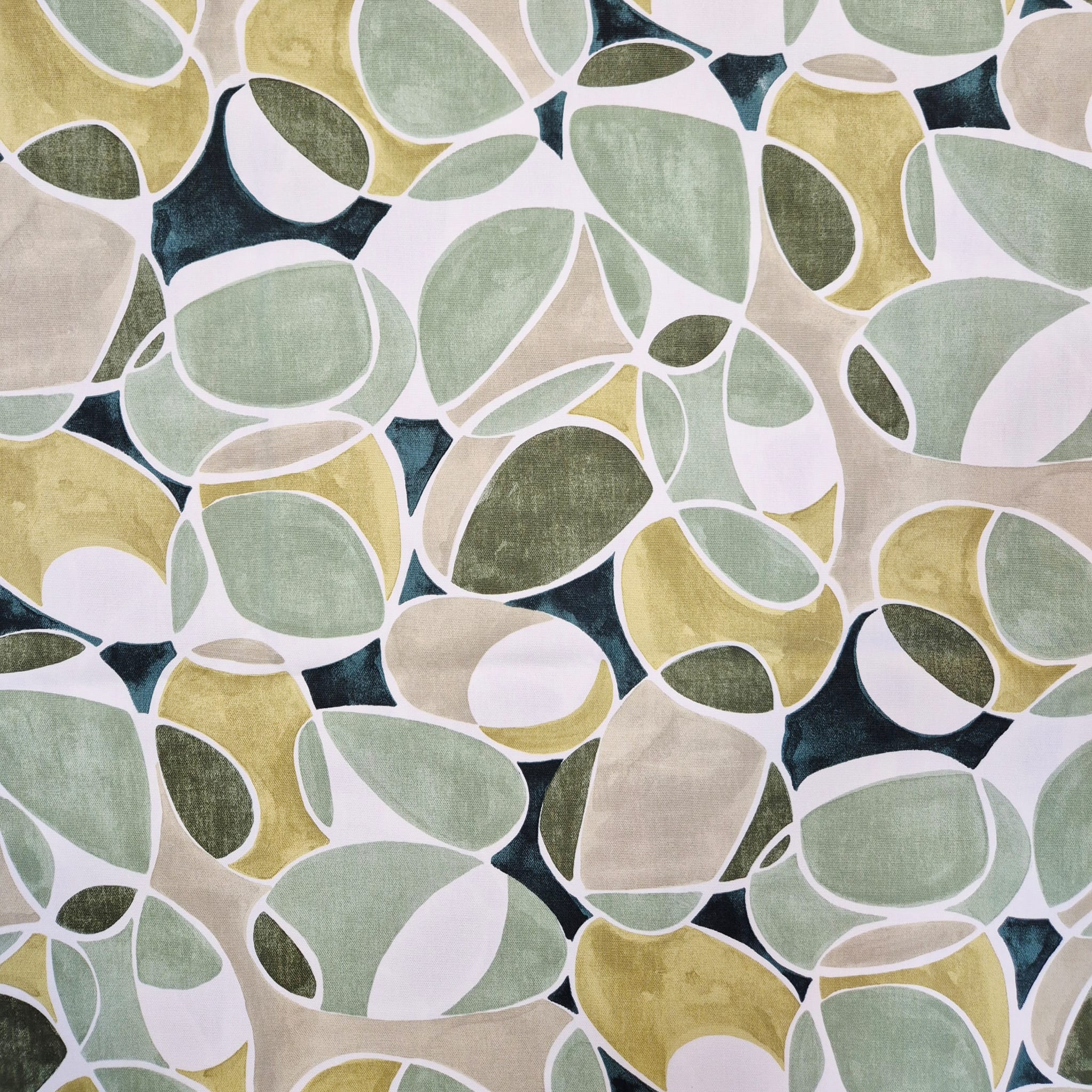 Stoff Baumwolle "Pebbles" abstrakt grün beige weiß Leinenoptik 0,5
