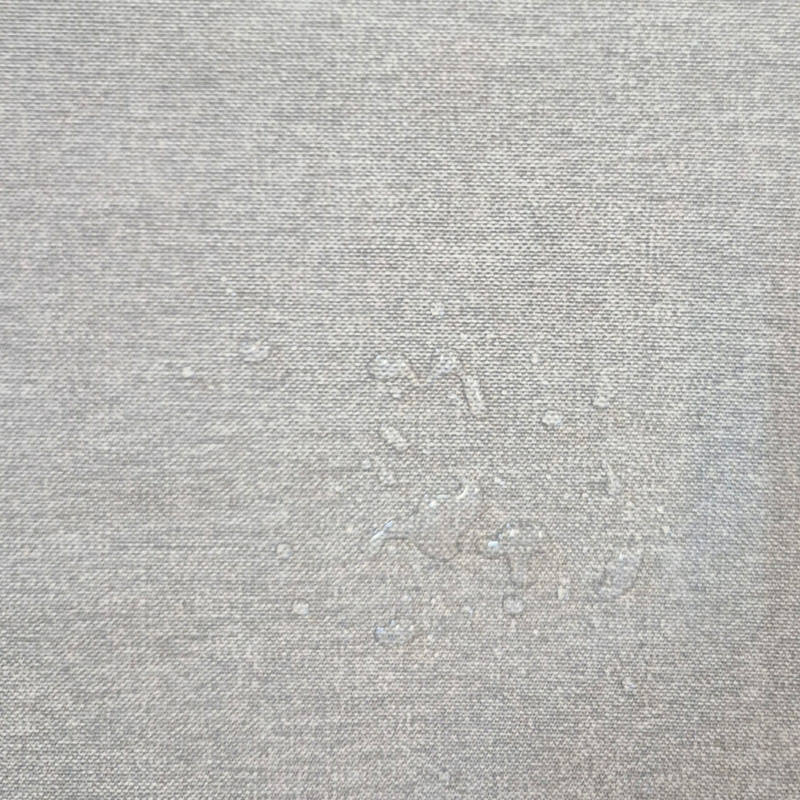 Es handelt sich um einen hochwertigen Baumwollstoff aus Spanien, der durch seine waschbeständige Beschichtung wasserdicht ist . Die Rückseite des Stoffes hat zudem eine wasserabweisende Imprägnierung, sodaß er auch von dieser Seite nicht netzt.