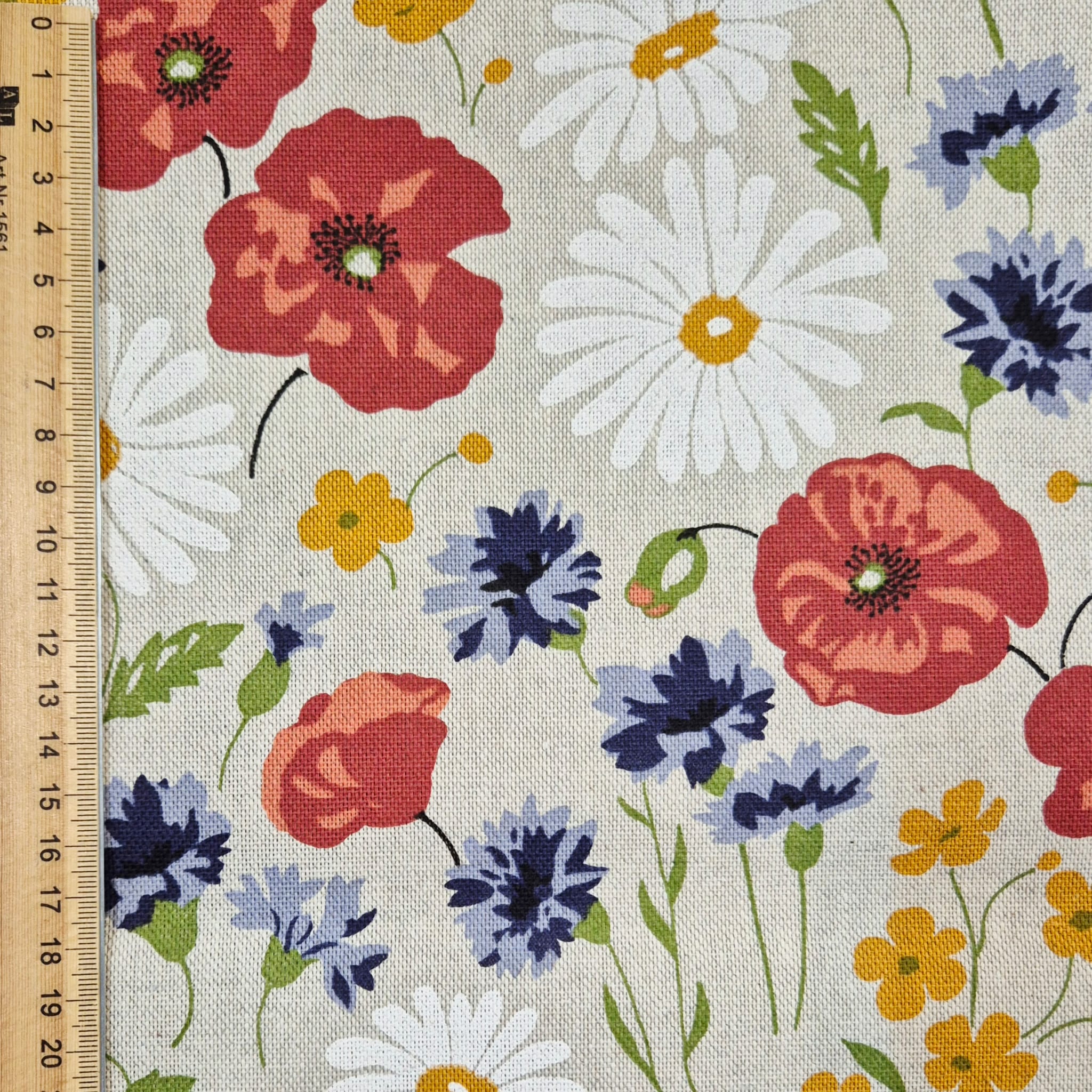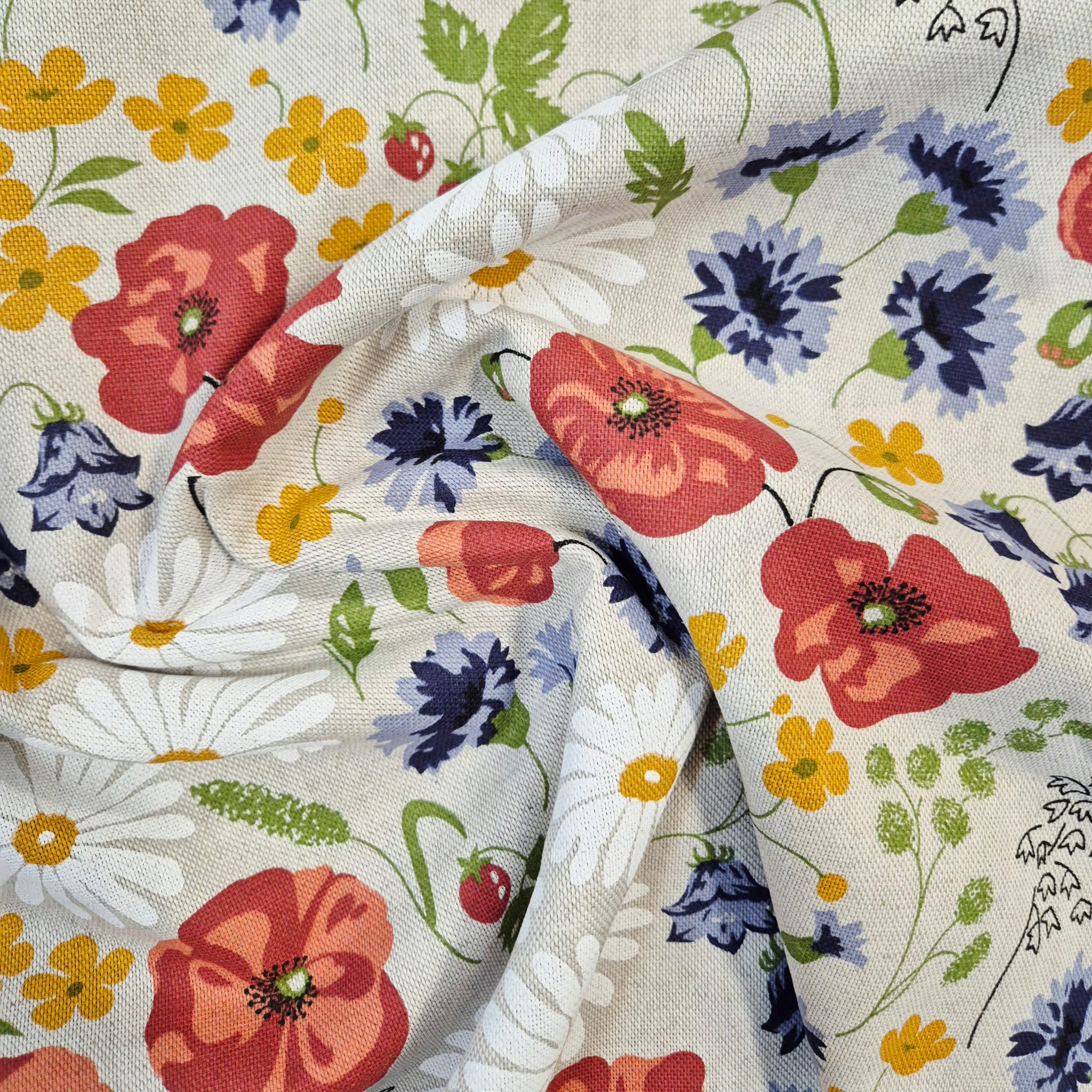 Stoff Baumwollstoff "Sommerblumen" natur bunt Mohnblumen Kornblumen 0,5