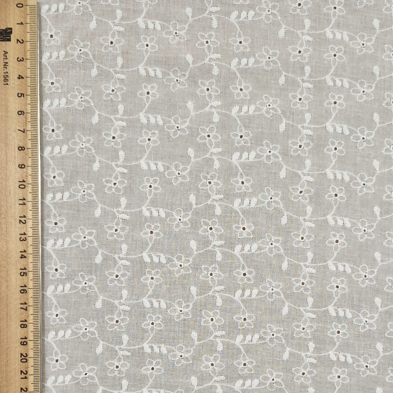 Produktinformationen "Stoff Baumwollstoff Lochstickerei "Blumenranken" weiß Batist 0,5"