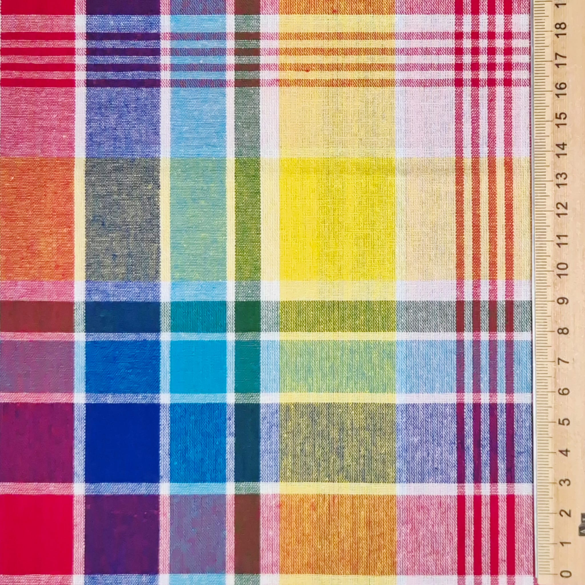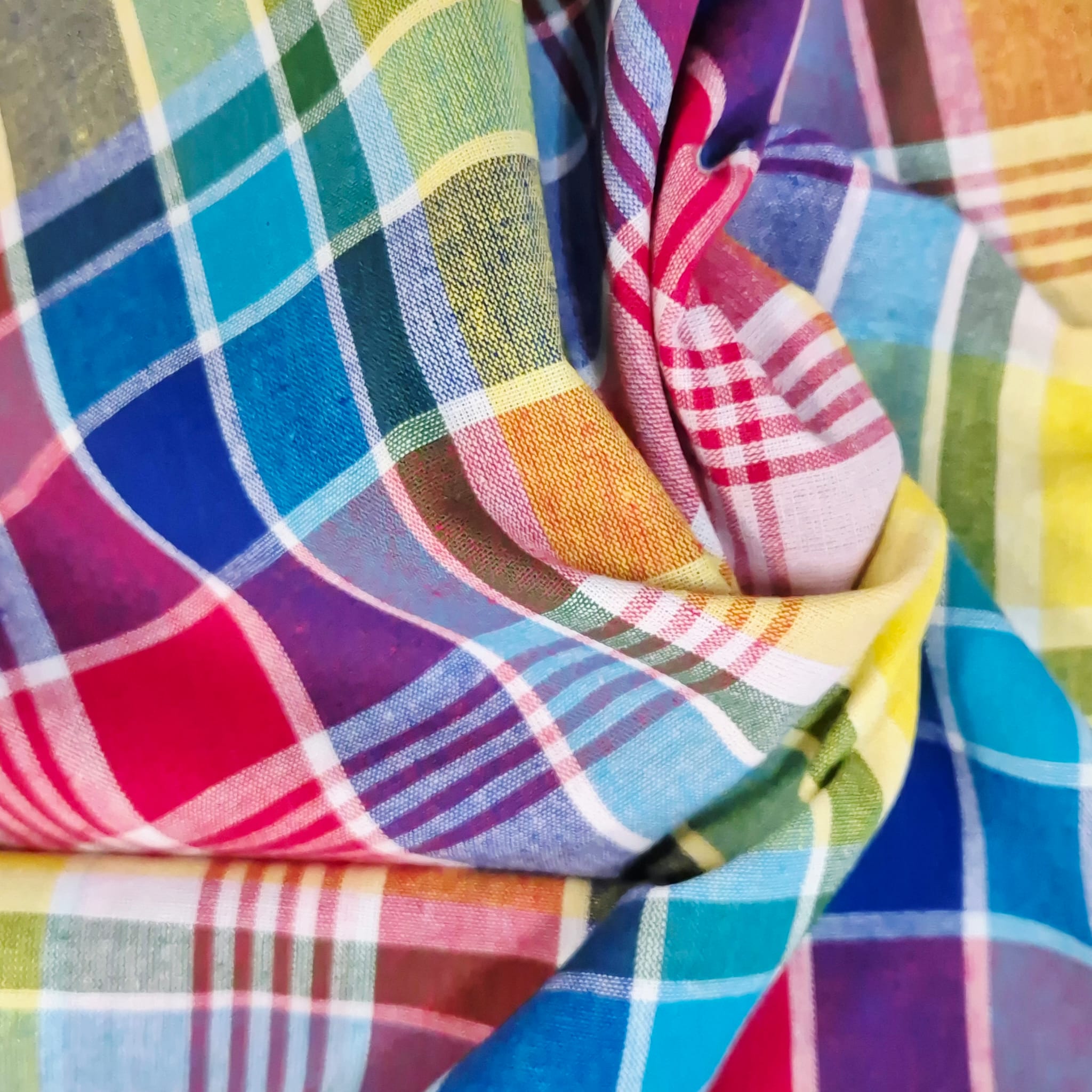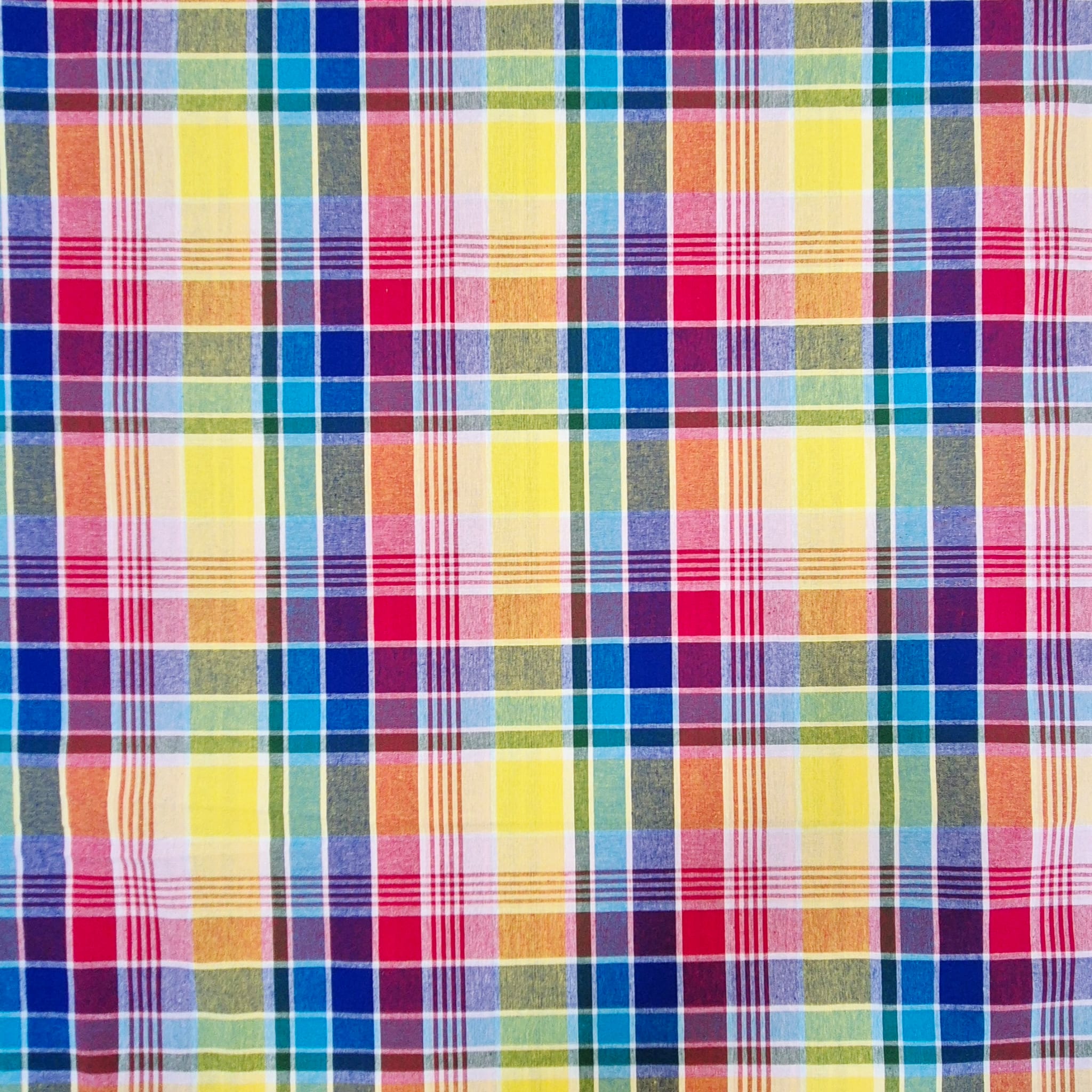 Kurzstück Stoff Baumwollstoff "Madras Multi" Gelb Rot Blau Aqua Rosa Grün durchgewebt 0,5m x 1,45m