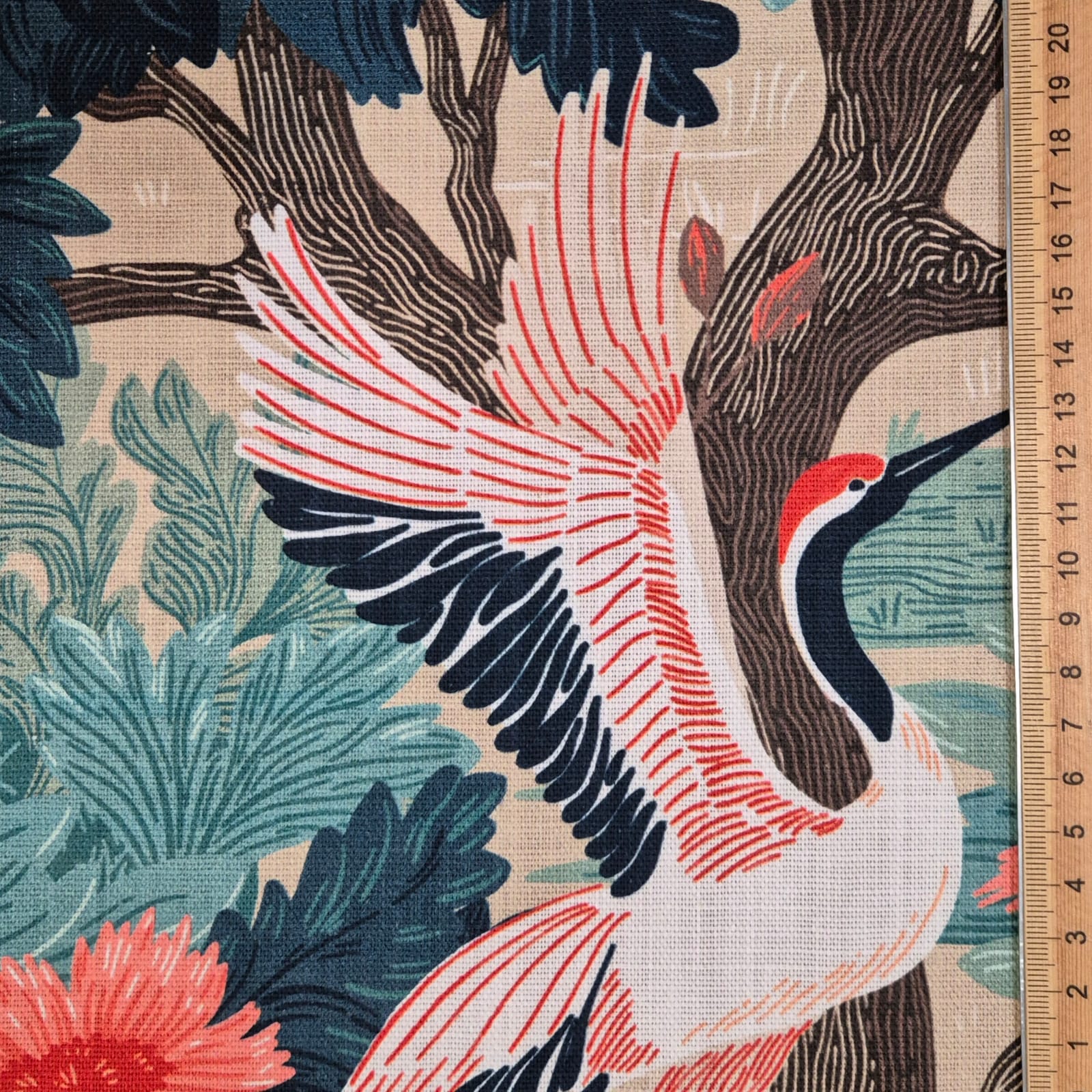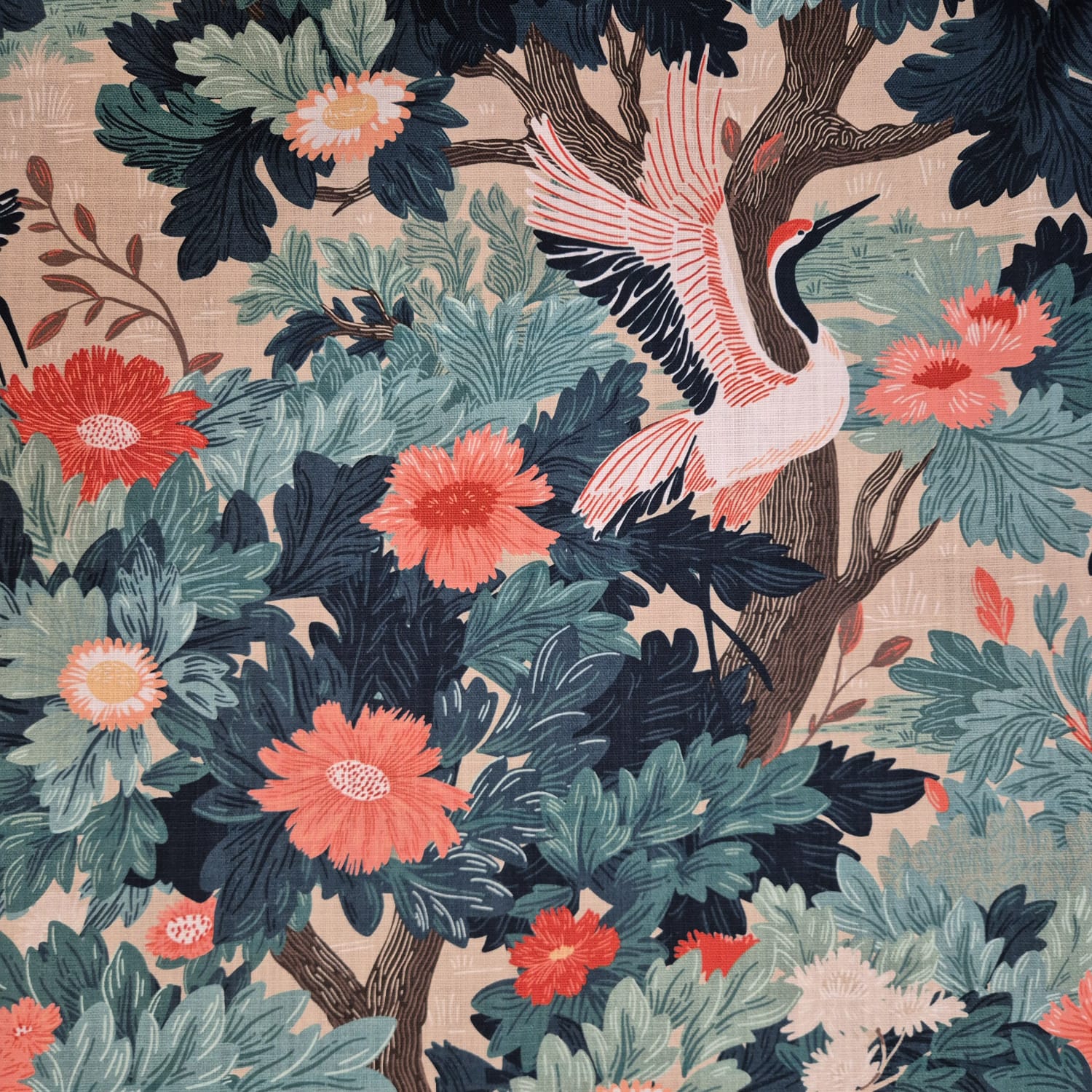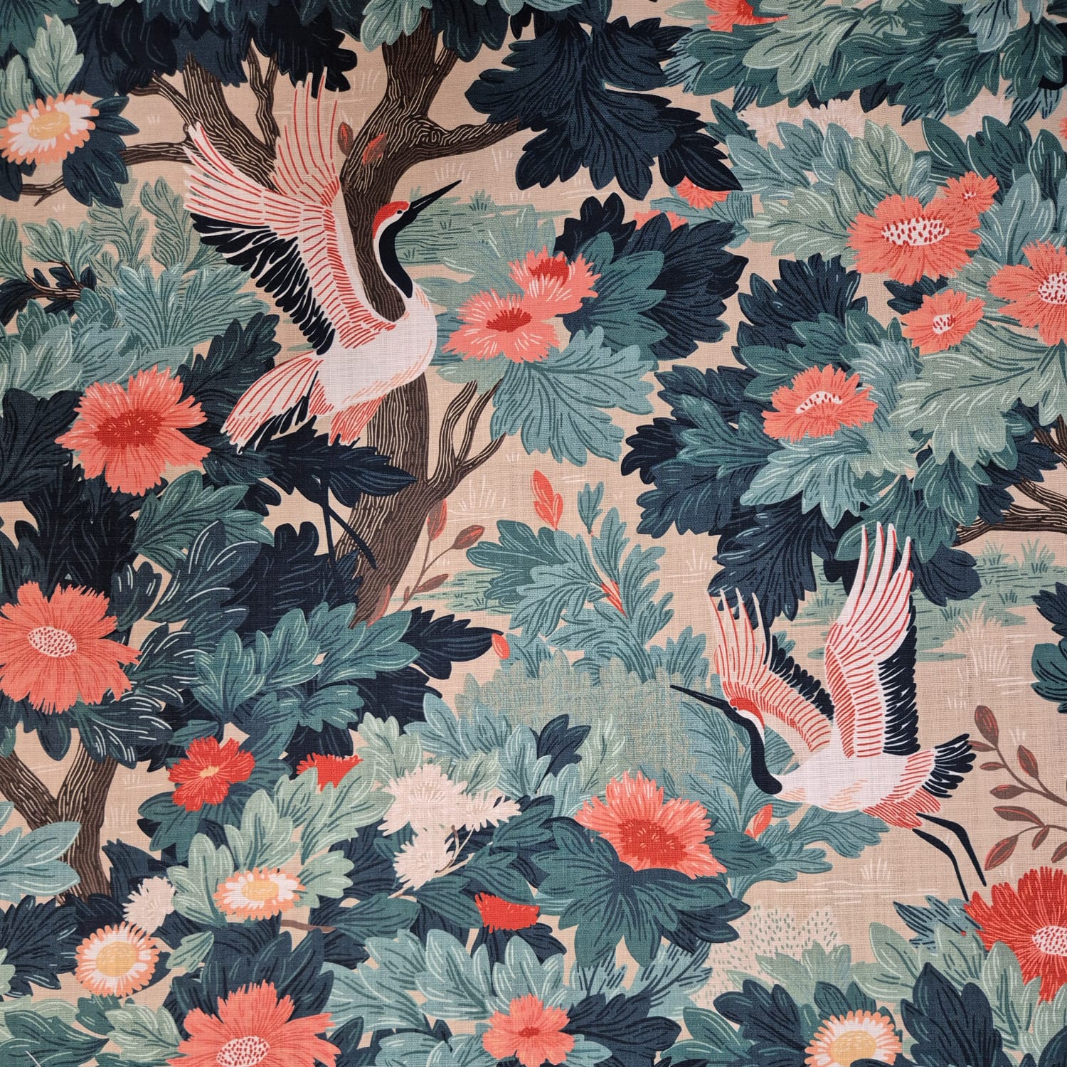 Weiterführende Links zu "Stoff Baumwolle "Kraniche" Blumen Blätter Leinenoptik Digitaldruck 0,5"
