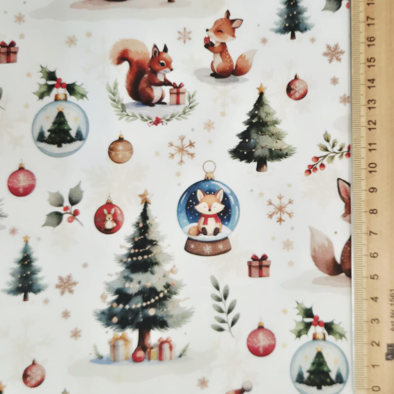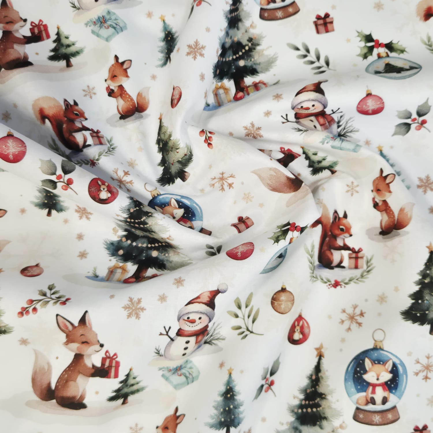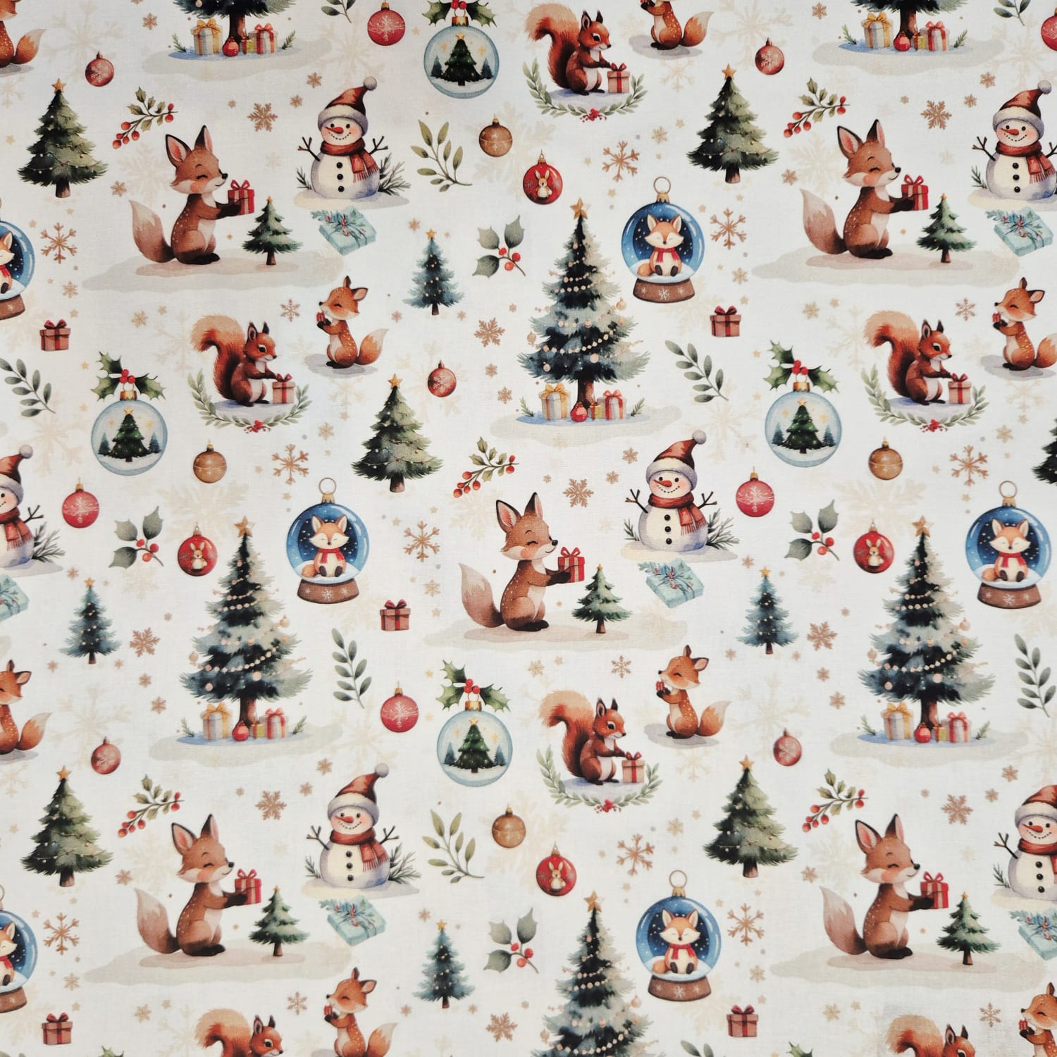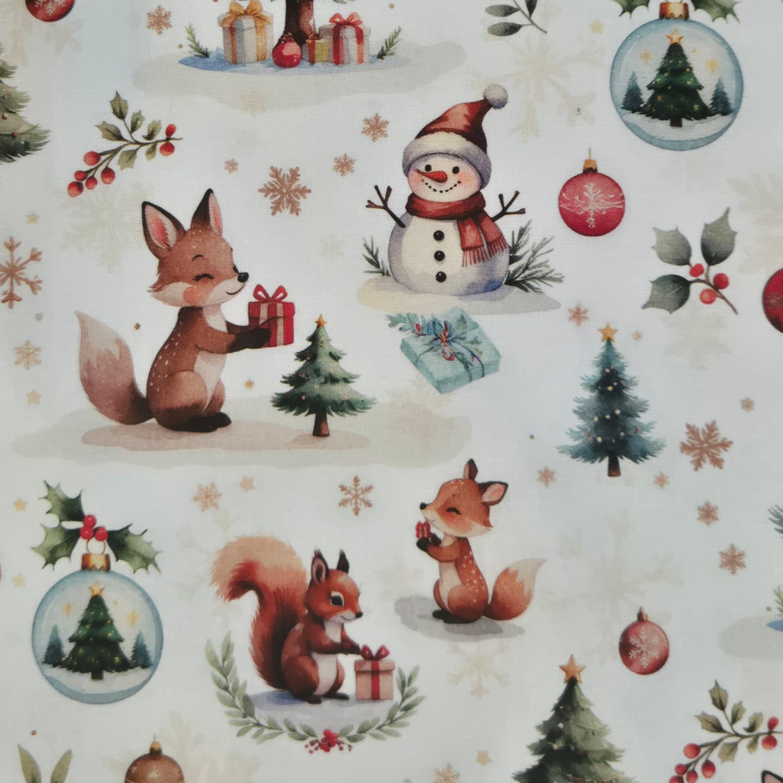 Der Preis gilt je 1/2 Laufmeter (0,5m Länge x 1,50m Breite) Baumwollstoff, einseitig im Inkjet/Digitaldruckverfahren bedruckt mit bezaubernd gezeichneten Weihnachtsmotiven. Ein wundervoller Stoff aus unseren Kinderstoffserie "Bilderbuch". Fondfarbe: Weiß