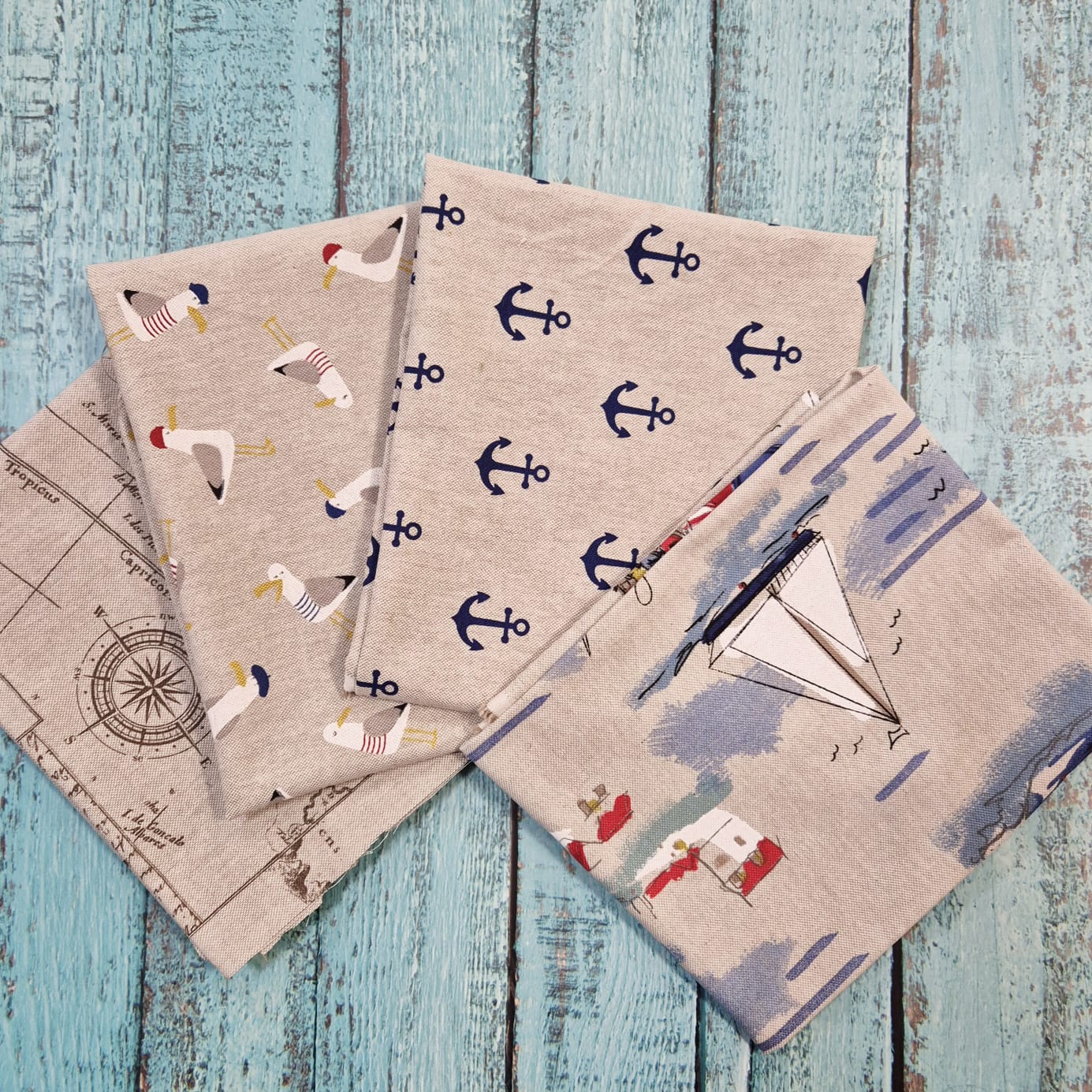 Weiterführende Links zu "Stoffpaket "Küstengrüße" Quilten Patchwork Geschenkverpackung 4 Stücke a 50cm x 70cm"
